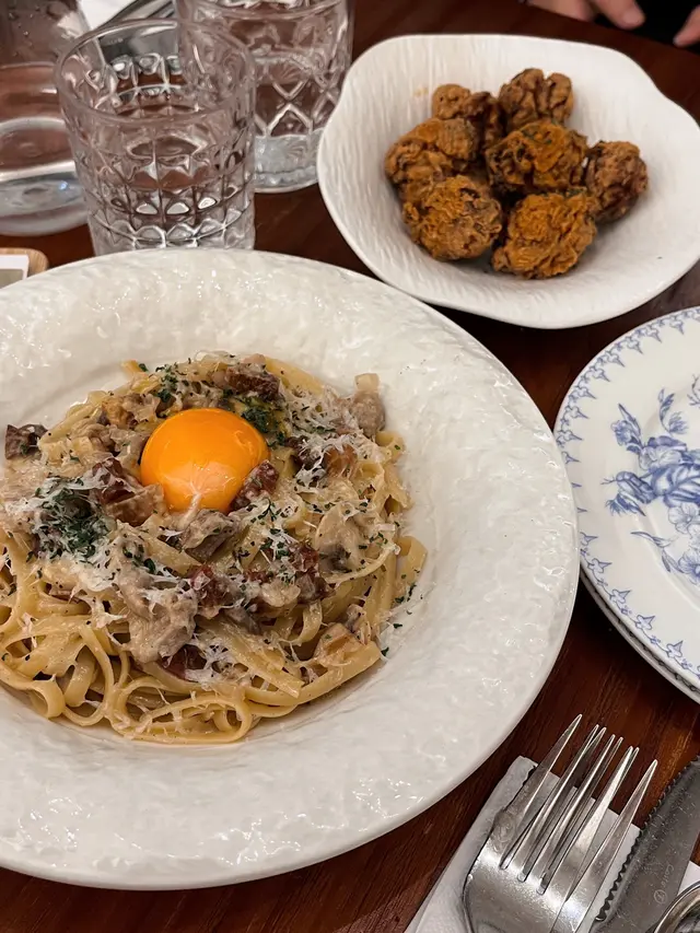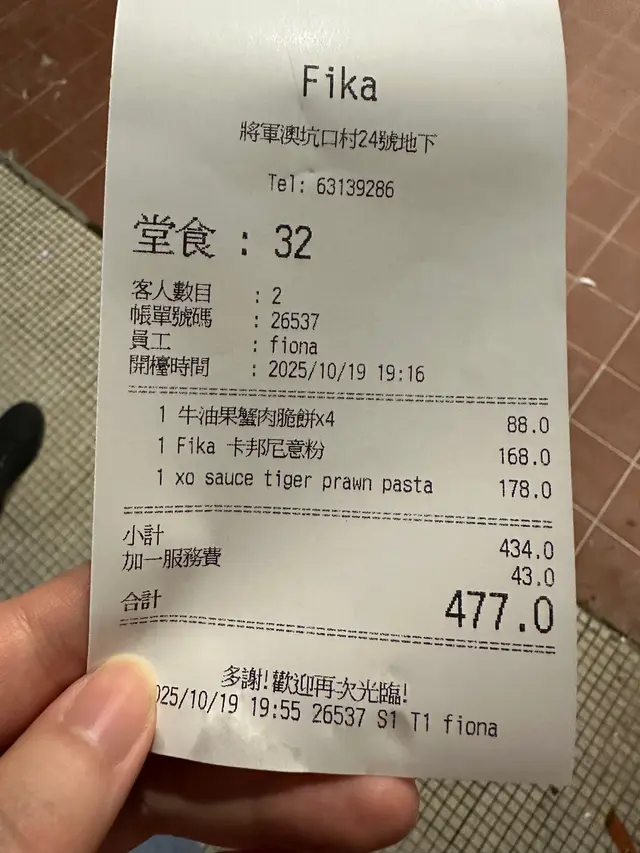 坑口 Fika 餐廳,隱身於村屋地舖,遠離鬧市喧囂,實在是一個將軍澳食好西的秘密基地。餐廳定位為高質小店,近年餐廳在將軍澳區內人氣急升,亦有不少其他區外人士專程過來品嚐,人氣爆登。🐚 1. 新鮮紐西蘭活青口白酒汁煮忌廉汁 (Fresh New Zealand Blue Mussels 500G)青口選用來自紐西蘭的高質藍青口,肉質肥美鮮甜。廚師以白酒及淡忌廉汁烹調,加入洋蔥、蒜蓉、香草等配料,令青口的鮮味完全釋放。另外再配上香脆法包,蘸上醬汁一齊食,更加滋味無窮。🥖 2. 牛油果蟹肉多士 (Crabmeat Cracknel, Avocado)牛油果蟹肉多士賣相精緻吸引,金黃香脆的多士上,鋪滿 creamy 牛油果蓉及鮮甜蟹肉,面層再點綴三文魚籽,未食已經流口水。一口咬下,多士外脆內軟,牛油果蓉細滑香濃,蟹肉鮮味十足,與牛油果的清新完美融合。三文魚籽在口中爆開,增添鹹香及層次感。🍝 3. FIKA自家製豬類肉卡邦尼意粉(Pancett, Homemade Salty Pork Belly, Parmesan , J.P egg)Fika 選用意大利豬面肉及自家醃製豬腩肉,配以日本蛋黃及 Parmesan 芝士,醬汁非常香濃掛麵。意粉則選用扁意粉,軟硬適中,掛汁力強。拌勻後,每條意粉都沾滿蛋汁及芝士,入口滑溜,鹹香濃郁。「可能係將軍澳最好食嘅 Carbonara」!🥧 4. 招牌FIKA焦糖蘋果金寶配意大利雪糕(FIKA's Caramel Apple Crumble with Italy ice cream)甜品即叫即焗,上枱時熱辣辣。底層是肉桂蘋果粒,中間是香脆金寶,頂層放上一球意大利雲呢拿雪糕。蘋果粒焗得軟糯,肉桂香濃,帶點微酸,與焦糖金寶的甜脆形成完美對比,與雪糕一齊食時感受到冰火交融的口感。即使遠離市區,仍都感引不少人專程前來,足見其吸引力。…查看更多