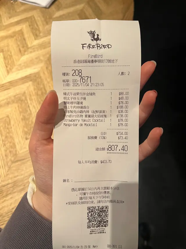 铜锣湾 Firebird 日式 居酒屋, 糸我们喜欢的聚脚点, 饮酒食野好方便. 餐厅装修好时尚. 开放式厨房, 师傅专业烧物, 又设有吧座.餐牌有多页, 串烧品种多.秋冬天气凉, 重有 海鲜锅, 顶吸引.还有 特式海鲜配饮品套餐 也不错, 只须 $198/p. (包前菜, 食物 3 选1, 另配自选饮品) 朋友即点. 餐饮 我们选了 Berry Kisses, 另单叫 Mix Fruit Tea, 冰冰冻, 味道有果香, 内有多款鲜水果, 有点像西班牙酒 Sangria, 改配茶味, 好饮啊 !套餐前菜: 牛舌豆腐煮, 牛舌煮得稔, 配上口感嫩滑豆腐, 食得 美妙.套餐主食两款, 其一: 脆炸软壳蟹, 伴萝卜蓉酱油. 软壳蟹外皮炸到卜卜脆, 内里酥软, 令人无尽回味. 另套餐主食二: 蟹味噌甲罗烧 蟹盖内载有蟹膏, 蟹肉. 蟹稃, 另备紫菜饭团同食.先把蟹肉蟹膏等混合, 甘香幼滑, 鲜味浓郁, 把有滑溜蟹酱涂上饭团, 卷 入紫菜包内一起吃, 比 寿司更好吃. 特上牛肉串烧盛合 (5 串): 分别用了不同食材: 日本产和牛肉串, 牛肉金菇/葱串, 秋葵串, 配日本蛋浆. 饮品配烧物, 很滋味. 先吃 日本产和牛肉串: 肉质嫩滑, 牛味浓, 带有肉汁, 夹上爽口长葱, 好好食.薄切牛肉串, 面烧得焦香, 包著金菇, 轻烧后带出牛肉香味, 金菇吸收了牛油香. 食得满意. 另 牛肉卷内包有青葱, 爽口较爽, 肉汁丰富, 啖啖充满著牛油香.秋葵串, 新鲜爽脆, 秋葵中心滑滑的黏液, 有点滑潺潺的感觉, 可降低腻, 极美味.今晚天气有点凉, 至岩食 松叶蟹海鲜火锅: 用铁锅盛载 连同火具这送上. 服务员提醒小心锅仔好热.材料好丰富: 有松叶蟹脚 4 只 , 生蚝 4 件, 蚬, 萝卜, 豆腐. 生菜......食材新鲜, 排列整齐干净.我们 慢慢把食材 逐一 放入汤锅. 一边滚一边食. 萝卜蔬菜清甜, 豆腐滑有豆香松叶蟹脚 , 好好肉, 味道甜, 又嫩滑.生蚝有4只, 蚝肉饱满, 蚝味浓, 大葱, 吃 得满意. 海蚬无沙, 味鲜美. 餐厅人气旺, 上菜快, 食物够鲜, 烧物火锅做得好, 店员细心, 大家吃得爽.…查看更多