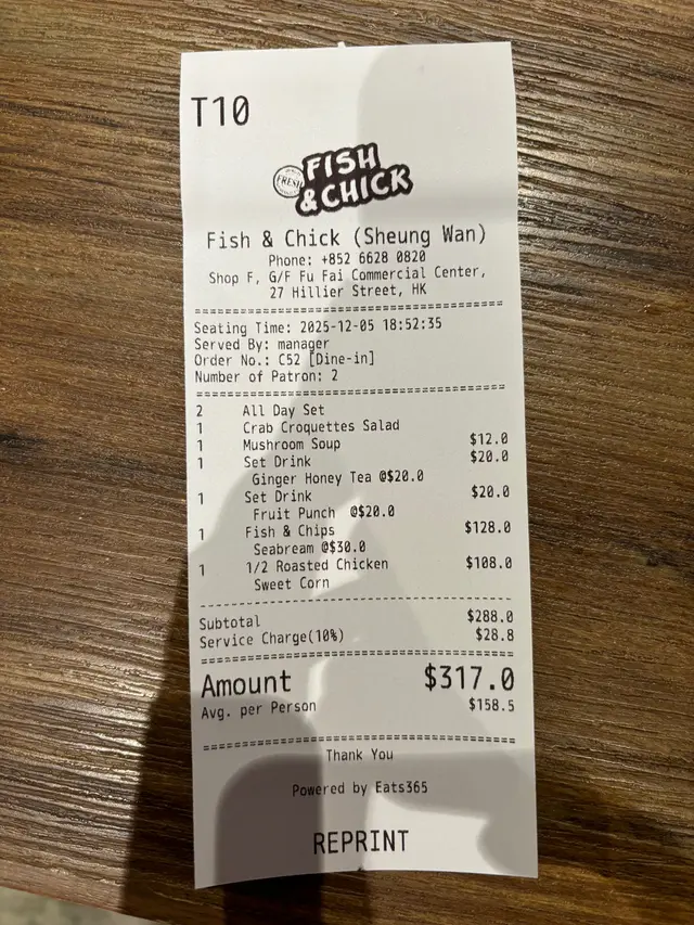 Fish & Chick (禧利街) (上环) 网上订位享低至8折优惠并赚Rice Dollars 网址: https://s.openrice.com/QrLS0U00D00 地址: 香港上環禧利街27號地下F號舖 电话: +852 66280820