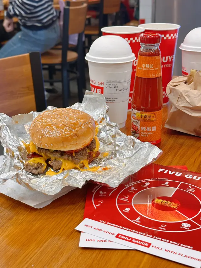 FIVE GUYS (湾仔) 网址: https://s.openrice.com/QrLS02Eu800 地址: 香港灣仔莊士敦道60號地舖 电话: +852 36189122