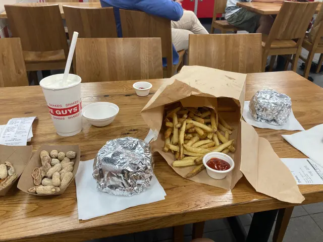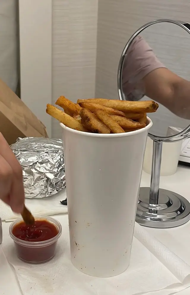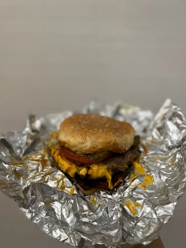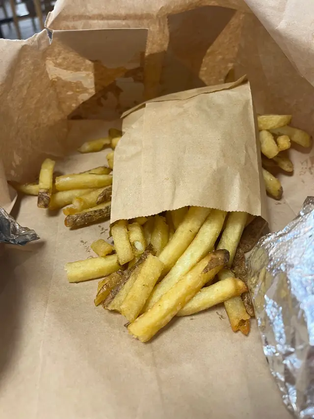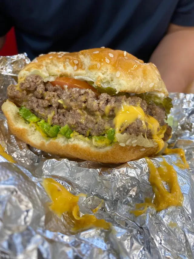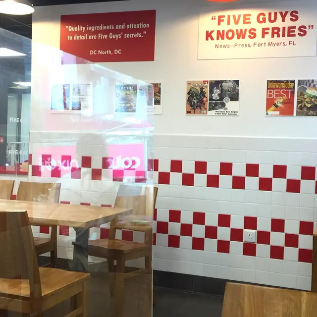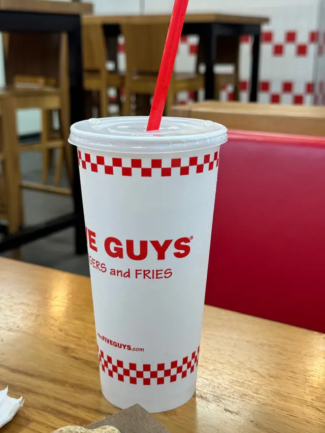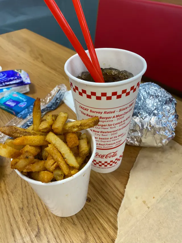 太耐冇食burger,突然間好想食就去咗five guys🤩點知原來佢出咗130蚊餐,就即刻入咗去試,結果飽咗成日🤰🏼仲有得自助點餐,又有17種topping任你揀,真係好正🤩另外,如果堂食的話,中意食花生嘅你可以拎少少邊食邊等。🔹任何雙層漢堡+薯條+汽水 $130男朋友揀咗個雙層漢堡,揀晒所有配料,醬就揀咗酸瓜醬同茄汁。雙層漢堡簡直滿瀉🤣好大個,一啖完全係食唔晒所有配料,要分開兩啖一齊食。可惜個牛冇以前咁juicy,雖然佢都仲係好多汁,但係食落有啲乾。薯條方面我哋揀咗細,因為細份都已經好大份🤣佢個薯條永遠都係全港最好食🤤又熱又脆,鹽嘅份量落得啱啱好😋呢個餐仲包咗汽水自由斟,想飲邊款都可以自由斟🤓🔹單層漢堡 $65我個單層漢堡就揀咗七款配料同茄汁,都係嗰句啦塊肉冇以前咁Juicy😣🔹Milkshake $65今次個milkshake係香蕉配朱古力仲加埋Lotus餅乾碎😋講真,唔係幾食到香蕉蓉同餅碎,但都好正😋好好飲。但男朋友就覺得太多野mix埋一齊唔係幾夾,香蕉同朱古力就夠了。…查看更多