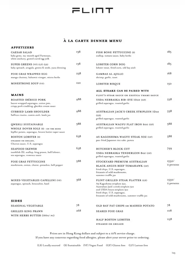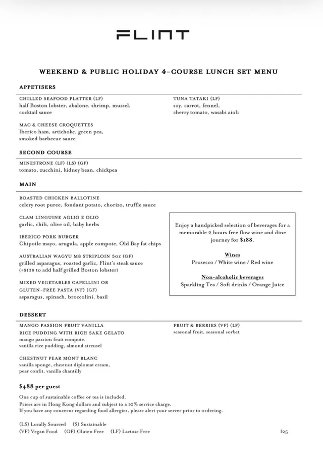 Filnt是港岛区其中一间比较低调而又Underrated的酒店扒房,主要是因为它和酒店的Executive Lounge结合起来,没有同类的相对独立空间,但牛扒的水准真的不错,特别是烤纹的深刻,外表的焦脆和内里肉质的嫩滑,用上的是USDA Prime水准的,完全没有问题。最重要的是他们的Brunch,人均大约四百多元,头盘竟然是Seafood Platter,当中的龙虾以及鲍鱼,比起牛扒的平实,增添一种高性价比的奢华。Flint is one of the more low‑key and underrated hotel steakhouses on Hong Kong Island, mainly because it is combined with the hotel’s executive lounge and lacks standalone space. The steaks, however, are good: sharply defined grill marks, a crisp char outside and tender meat within, using USDA Prime beef with no issues at all. Best of all is their brunch, about HK$400 per head, starting with a seafood platter featuring lobster and abalone, adding a sense of real value.…查看更多