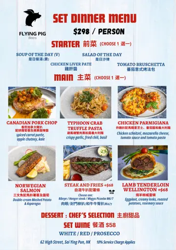呢间餐厅扎根喺西营盘已经有十年啦!餐厅员工同啲街坊熟到经过行埋都会打声招呼寒暄几句餐厅设有室内室外座位,等主人可以同毛孩一齐食饭;另外,明白到用餐时间长小朋友会闷,餐厅仲会提供颜色笔俾小朋友画下画油颜色。喺好多细节位都感受到浓厚人情味🐷🍽️✨ 𝓢𝓮𝓽 𝓓𝓲𝓷𝓷𝓮𝓻 🐷🍽️✨ 𝔀/ 𝓢𝓽𝓪𝓻𝓽𝓮𝓻𝓼 / 𝓜𝓪𝓲𝓷 / 𝓓𝓮𝓼𝓼𝓮𝓻𝓽 · Tomato Bruschetta· French Onion Soup· Lamb Wellington· 1/2 Baby Back Ribs· Chocolate Tart / Lemon Tart前菜 /番茄意式烤法包: 多士铺满新鲜蕃茄粒、生洋葱、芝士,再淋上黑醋,酸酸甜甜带点辣味,惹味又开胃今餐重点介绍威灵顿羊柳。呢道菜唔系到到都食到(平时威灵顿牛就见得多!)表层酥皮做得好脆,馅料有羊菲力条同茄子🍆味道出奇地夹🙌羊肉质嫩滑,羊膻味唔算重。配菜有焗薯仔同菠菜薯蓉。Happy Hour时间光顾除咗可以食到特色小食拼盘,只须$36起就可以畅饮啤酒、葡萄酒、鸡尾酒🍻…查看更多