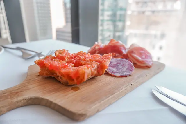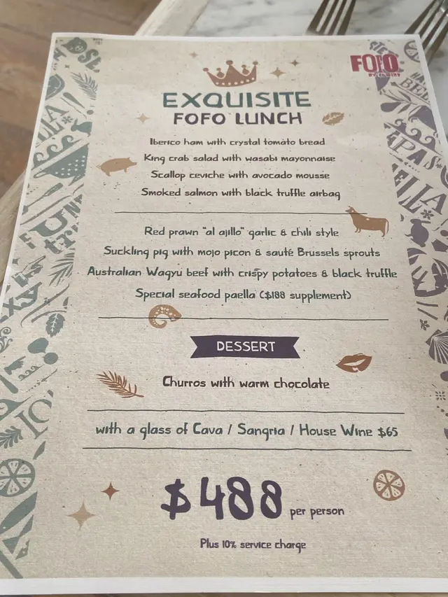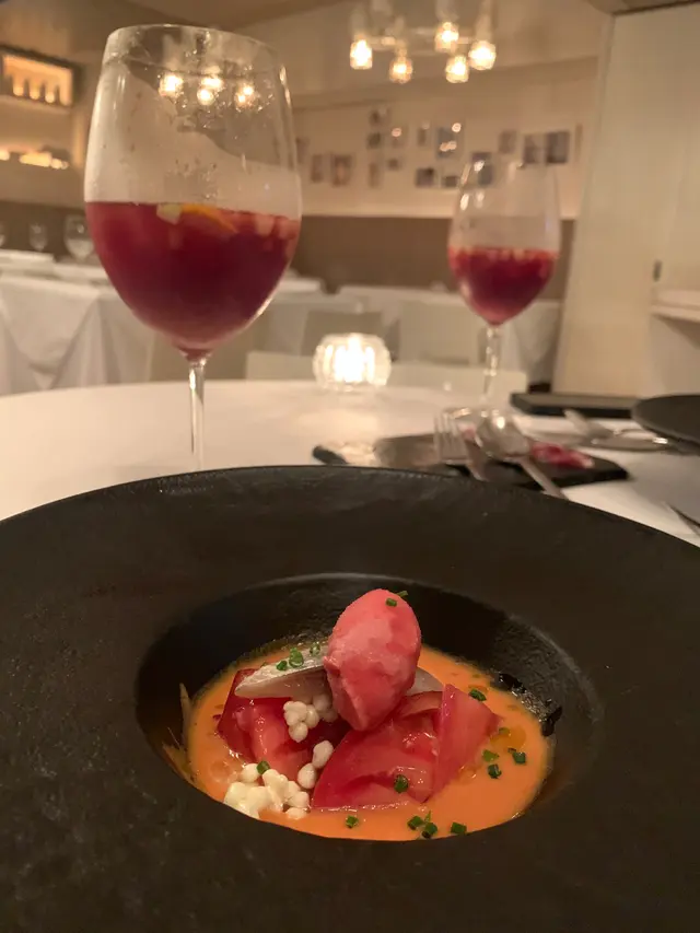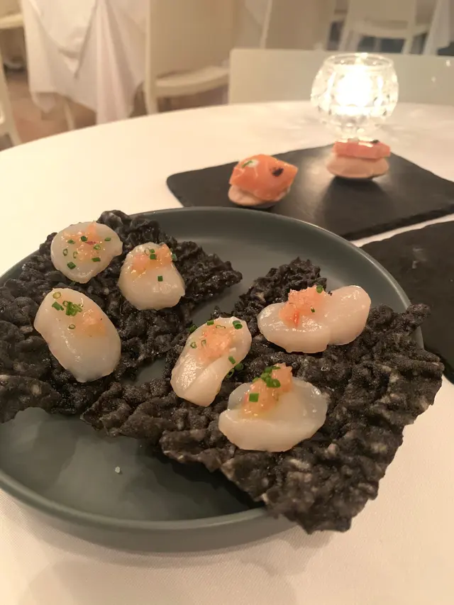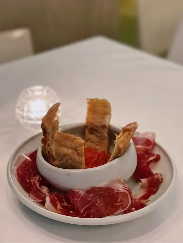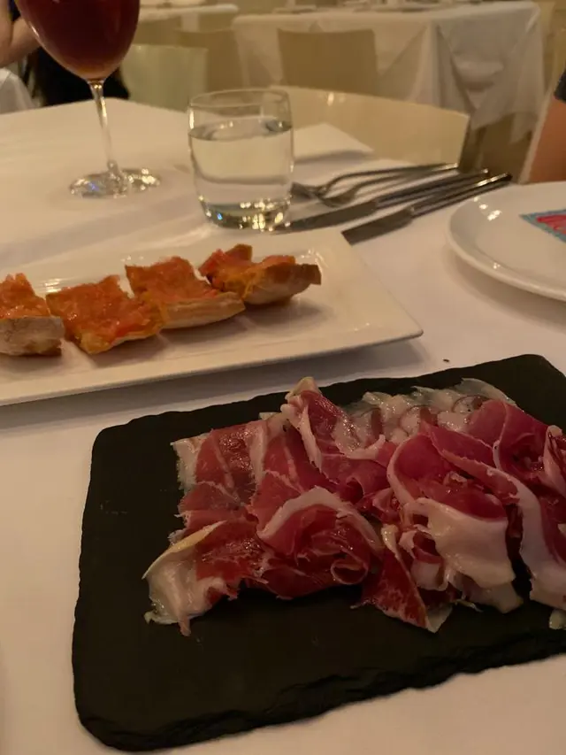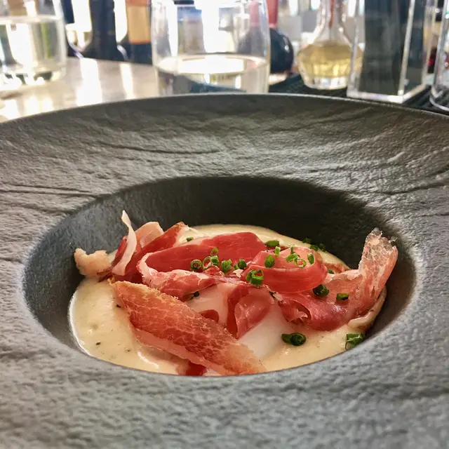 生蠔:新鮮有海水味,蠔身爽脆。配上自家製cocktail 裏面有紅椒、蕃茄、小紅蔥等材料更能夠引起海鮮嘅鮮味。對板。蕃茄橄欖油脆餅:欖油同埋蕃茄嘅美妙配合。鋪上脆口嘅麵包作為餐前小食非常開胃。火腿包馬介休球:火腿嘅濃香襯托炸馬介休球。入邊嘅材料均衡啲大嘅衝擊充滿口中久而不散。小食友報告太大浸芝士味。墨魚汁小馬介休球:墨魚汁嘅鮮味充斥喺個餡裏面令到整個馬介休球都充滿鹹鮮香,回味不斷。更勝火腿馬介休。白酒:清新嘅檸檬柚子同埋百花香味。好似夏天中一陣陣地中海嘅微風吹拂。海鮮沙律配克力架:八爪魚加上帶子刺身配以蕃茄碎橄油沙律。上面再有脆米餅。脆米餅有點像和風既香脆又可口。辣椒蒜頭蝦:蒜頭辣椒煮起嘅橄欖油配以大隻嘅海蝦蝦嘅質素相當之好。肉質既有鮮味亦都有彈性。相當對板。火腿:肉質鬆化,鹹香十足。食到停唔到口。蟶子:配以本菇同埋風乾火腿。雖然加咗啲BB椰菜仔,好有東方色彩嘅一碟餸。不過個人覺得廣東人豉椒炒蟶子先至係王道。燒乳豬:豬肉嫩滑鬆軟,豬皮香脆可口。整個感覺配合得非常之好啊。但係番茄薯仔餅不似預期。比較煙韌同埋過咗火喉。海鮮燴飯:非常之香濃嘅鮮蝦海鮮湯令到整個飯都非常之鮮香。飯嘅生熟度剛剛好。入邊亦都會有好多墨魚粒,亦令到整體嘅口感提升左。上面嘅海鮮裏面龍蝦係比較鮮味而突出。不過青口同埋顯就真係好一般啦。環境:環境舒適,燈光亦非常之恰到好處。配合窗外中環嘅商業區風景以及遠處半山嘅風景,整個感覺十分舒適。不過碰巧當晚有不少多外國人喺度Happy Hour,嘈咗少少啦。…查看更多