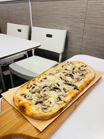 而手作薄饼点了白菌车打芝士口味,菇菌都好多,味道不过不失,但同阔面一样,饼皮都系比较有嚼口嘅类型,所以成餐饭都食到有少少攰。