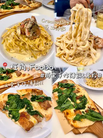 FooDo系一间位于旺角嘅小店,主打手作意粉同薄饼,台铺以纯白色为主调,环境干净明亮,墙身都有挂上简约小挂画,营造一种简约同纯粹嘅气氛。当日分别点了一份薄饼同手作意粉,自家手工阔面好有嚼口,不过个人比较钟意淋一点,所以如果唔太钟意嚼口嘅可以落单时提醒店员煮淋一点,阔面相当挂汁,每一条面条都可以挂上满满嘅酱汁,配上生鸡蛋会更顺滑