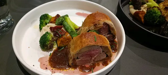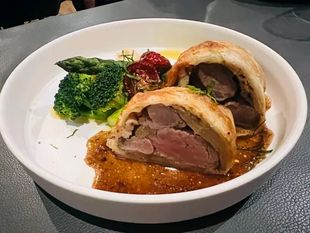 Food Review📝Umami Wellington🐏Lamb Loin, Smoked Eel, Roasted Asparagus, Mashed🥕& 🥔, Au Jus- My first time to have Lamb Wellington - Superb Tender yet still springly Lamb Loin which I've never tasted before. Made me understood what Fresh Meat means- Perferctly demonstrated a Nice Gamy Flavor - A sudden & awakening smoked flavor unleashed in between the perfect light buttery pastry & the tender Lamb Loin - thought it was smoked ham at the first taste. In fact, that was smoked Eel, mild yet remarkable smoky & savoury taste and less gamy than smoked meat, it taught me what umami really means- the dried & grilled cherry tomato has an intense sweet tomato flavor. That's what we call details🥭 Mango Pomelo Sago 楊枝甘露- Refreshing & Appropriately Sweet Ending 🐖48+ Month Farm Direct Hand Sliced Jamon Iberico de Bellota served on warm plate- Delicate🐖Flavor with a slight Savory taste✨️Vibe- Friendly & Attentive Staff- Nice wine at reasonable price …查看更多