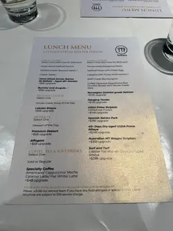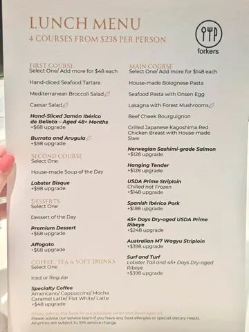 Visited this Western resto in Wan Chai with colleagues. .We all ordered the 4 Courses Lunch Set. Following are some of our selections for the First Course, Second Course, Main Course, Desserts and Drinks. -First Course:-Hand-diced Seafood Tartare The seafood tartare contained salmon, tuna, angel shrimp, bell peppers and avocado. The angel shrimp tasted sweet, while the avocado gave it a buttery texture. The tuna was slightly fishy though. -Second Course:-Mushroom SoupThe soup had a generous amount of mushroom, and with each sip, you could taste the richness of the mushroom. It was quite creamy. -Main Course:-USDA Prime Striploin (+HKD148)The medium-rare striploin was tender with an alluring pink interior. It was nicely seasoned with sea salt, although the meat on the right side seemed a bit saltier than the meat on the left. Overall, it was savoury with a great texture. -Seafood Pasta with Onsen EggMy colleague ordered this and I didn't try it, so I was not sure abt the flavour. Cheese was sprinkled on the pasta. -Desserts:-Dessert of the DayThe dessert of the day was a chocolate tart, and it was extremely small, perhaps only around the length of my little finger...Its chocolate flavour was rich though. -Affogato (+HKD68)The vinalla ice cream was topped with espresso, exuding an intense caffeine aroma. -Drinks:-Iced Mocha (+HKD48)The mocha was luxurious and smooth. After mixing it, it had a balanced combination of bitterness and sweetness. .The resto has a nile blue colour tone, and the seating is quite comfortable. The staff initially seemed a bit grumpy when she served us, but her attitude improved by the very end our of meal. …查看更多
