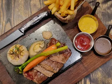 系观塘做野既朋友,dinner 食过一次话呢间几ok, 话晚餐都可以黎呢间试下㖞 。咁我地一于上去就试试佢 。棒棒鸡锤配蜜糖芥末汁炸鸡锤外皮金黄香脆,食落真系超级香脆,搭配蜜糖芥末酱,鸡肉多汁不干,蜜糖芥末汁甜中带微辣,令到炸鸡味道层次更加突出。旁边有新鲜沙律菜、车厘茄同点醋汁,食落可以减腻增鲜,绝对贴心。食完仲想再食😋墨西哥牛肉馅饼呢款馅饼外皮烘至微焦,已经切成三角方便分食,面头都有蜜糖芥末酱调味 。牛肉够入味,伴随芥末酱有一阵轻辣同香滑,仲有满满既芝士系入面,浓浓既芝士加埋牛肉,已经配撘 。适合做小食或者配酒,非常开胃。餐前小食唔错既选择👍🏻明太子酱软壳蟹意大利粉一上枱就已经被呢个意粉吸引住,微粉红色嘅明太子忌廉酱包裹住幼身意粉,面头仲有炸得香脆嘅软壳蟹同新鲜芽菜点缀,色彩吸晴 。入口滑溜,明太子带有咸香,忌廉酱唔会腻,意粉挂汁力强。软壳蟹外脆内嫩,呢个错色配搭不错 。泰式奶茶梳乎厘甜品绝对系焦点!一送上枱就见到厚厚既梳乎厘,面头有厚厚泰式茶奶酱,流质得嚟又唔会太腻,仲放咗粒粒白珍珠同新鲜薄荷叶。班戟2层厚,非常松软,配合泰式奶茶酱嘅香浓,旁边有烘脆饼干碎和糖粉点缀,食落真系好泰式奶茶,口感层次好丰富,绝对系甜品控必试之选!佢仲有开心果口味,听讲又系必食😋留意返,佢地下午茶仲做紧全单75折,行过路过可以去试下 。📍Four O Five Coffee &Eatery 观塘成业街19-21号成业工业大厦地下2号舖…查看更多