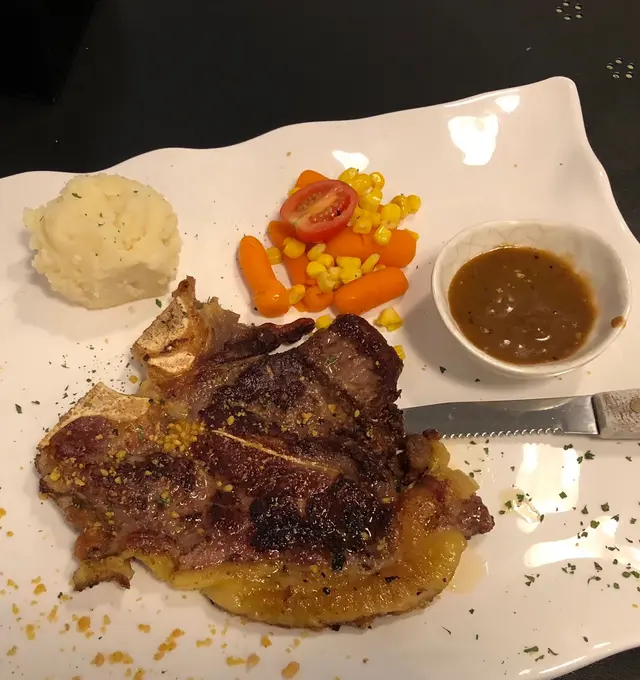 因為之前買左團購 所以趁未過期之前黎食個晚餐 Book左8點 我地7點半就到左 店員(?經理)安排左我地坐係個雪櫃隔離 好嘈 而且經理既態度同語氣都好差當晚6.7成full 臨近聖誕都有唔少聖誕佈置 環境都ok 在場既後生哥哥仔服務態度相對就好好多煙鴨胸沙津 有芝麻醬同凱撒沙律醬2種汁可以揀跟餐既羅宋湯 胡椒味比較重 但係我接受到 唔會太酸餐包真係幾好味 咬落去個下有牛角包個種脆口 但係食落就軟綿綿 有啖啖既面包香 好岀色泰式生蝦 新鮮鮮甜 不過唔係平時泰式既酸辣味道香茅雞翼 其實就係可以點酸甜醬既炸雞翼安格斯T骨扒10oz一放上枱個一下覺得真係好大份 成件事好有聖誕氣氛 肉質唔錯 一塊牛扒2隻口感香草燒春雞拼珍寶虎蝦燒春雞既香草味只停留係表面 而無滲入深層 不過都還可以虎蝦比想像中細隻好多 而且霉口左 藍蝴蝶雪糕梳打 (+$15)右 粒粒菠蘿柚子特飲 (+$10)飲品賣相好靚 但係飲落會有少少失望查看更多