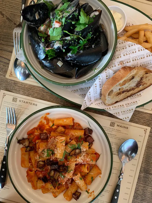 中環青口放題✨ 慶生搵地方?呢間超有氣氛嘅餐廳一定要bookmark!🎉😍食物:🦪 Frite House Mussels 1/2kg (9/10) ($275)青口份量夠多,每隻都好鮮甜!番茄、蒜頭同洋蔥啲汁超級惹味,真係想拎麵包蘸晒嚟食!薯條又脆又香,配青口一流~🍄 Mushroom Risotto (7.5/10) ($185)Risotto超creamy,米粒軟硬適中,每啖都好香菇味,啱晒鍾意creamy口感嘅你!🍝 Spaghetti Aglio E Olio (6.5/10) ($145)橄欖油蒜香味濃,有啲辣辣地,適合鐘意刺激味蕾嘅朋友~🍹 Lucky Peach (6/10) ($110)細細杯但幾濃酒味,如果飲唔到好濃嘅朋友就可以嗌其他好啲~🍰 Waffle Bomb Alaska (6/10) ($150)賣相超靚,影相打卡一流!不過味道就普通咗啲,有啲漏,如果純粹打卡可以一試~📸環境:(8/10) 餐廳裝修超有歐式酒館feel,好適合慶生或聚會,氣氛開心熱鬧,大家一齊開心Chill住食!💁🏻服務:(8/10) 職員熱情有禮,慶生時仲會幫手搞氣氛,仲跳埋舞!影相打卡冇難度,服務好貼心!👛性價比:(6.5/10) 青口CP值算高,食物選擇夠多,價錢雖然少少貴,但聚會或慶生開心share最啱!🌟總評: Frites係慶生/聚會嘅首選,青口新鮮多汁,環境又有氣氛,影相打卡超吸睛!無論同朋友或家人嚟都開心滿分,想搵節日/生日聚會地方,呢度一定要bookmark!慶生想開心又想食好嘢,記得book位嚟試下!❤️…查看更多