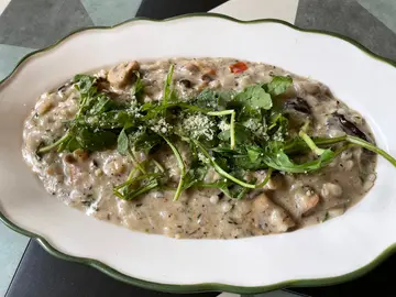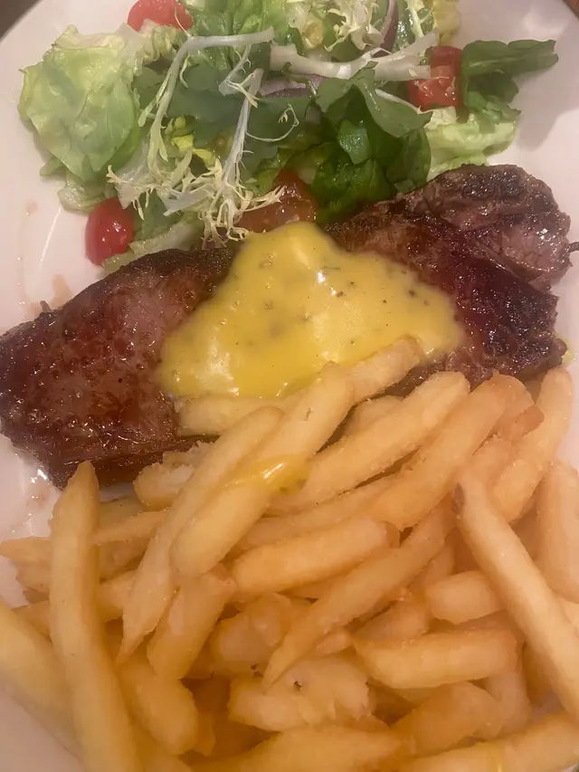 Frites Belgium on Tap 主打西式食品,例如:牛扒,青口,risotto,pizza。可以坐户外或者室内。今日三号风球天气没咁热又有d风就拣左坐室外。嗌左一个3 courses set lunch,汤拣左蕃茄汤,入面有几粒细细地嘅青口,蕃茄汤唔稀但入口颇酸,食得出系用左大量茄汁煮成,反而青口有食材味道。main course拣左fish dish, 系煎三文鱼排,下面的是椰菜花做成的饭,卖相都颇似真嘅饭,再配埋同蕃茄汤相似嘅汁,鱼扒大份,煎到干身,本身没咩调味,味道主要靠茄汁。甜品系tiramisu,如果唔要甜品都可以拣饮品,味道不太甜,味道中规中矩。跟住再嗌左个mushroom risotto, mushroom份量唔少,啖啖都有香菇配饭,奶油都做得几creamy同浓郁,已经抢过哂所有食材嘅味道,米已煮至全熟,更符合香港人食饭嘅口味,份量充足,适合大家分来食。值得一赞系侍应好细心,上餐时主动问我地会唔会share food黎食并提供额外餐具。两位食用$451,可以慢慢坐食野倾偈chill下好地方。…查看更多