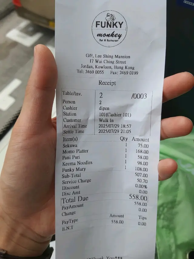 Funky Monkey (佐敦) 网上订位享低至8折优惠并赚Rice Dollars 网址: https://s.openrice.com/QrLS0Q7a700 地址: 香港佐敦偉晴街17號地舖 电话: +852 24690055