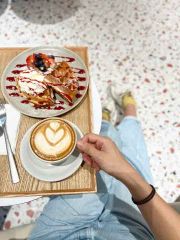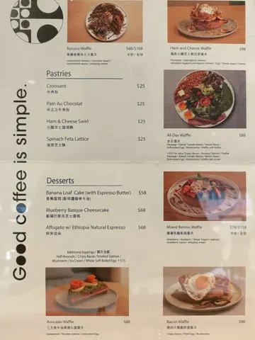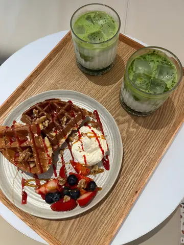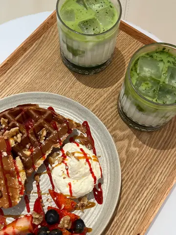 去咗旺角睇波鞋,路过见到原来旺角GIORMANI旗舰店入面有Cafe㖞!Cafe就喺门口嘅位置,墙上面画晒公仔好靓!即刻入去试吓Cafe 由本地著名咖啡品牌ideaology主理,可以一边体验GIORMANI梳化,一边品尝优质嘅手冲咖啡好享受呢~我哋都嗌咗all day Breakfast ,全部嘢食都配窝夫,分别有咸味和甜味,啲窝夫系劲松化,好似食紧鸡蛋仔咁,里面有菇、茄汁豆、Bacon、肠、鸡蛋、窝夫、沙律菜,鸡蛋系流心嘅糖心蛋,几好,沙律菜份量好多,好抵食嗌咗一杯咖啡同埋Green tea latte 觉得好好饮,同平时嘅有啲唔同,咁就问咗个店员原来佢哋用咗椰奶加燕麦奶,所以味道好出👏🏻我见佢冲咖啡嘅时候都有逐杯闻吓同试味,好有heart呀!Overall嚟讲,食物唔错,但系all day Breakfast就间间都系差唔多,唔会好大分别,而窝夫嘅分别就系比较大,系好食啲,同埋都几平,咁仲可以追加牛油果、烟三文鱼等,就更丰富啦,但系我惊食唔晒,咖啡系用心制作嘅,唯一要改善嘅地方就系送餐时间比较耐,睇嚟要增加人手…查看更多