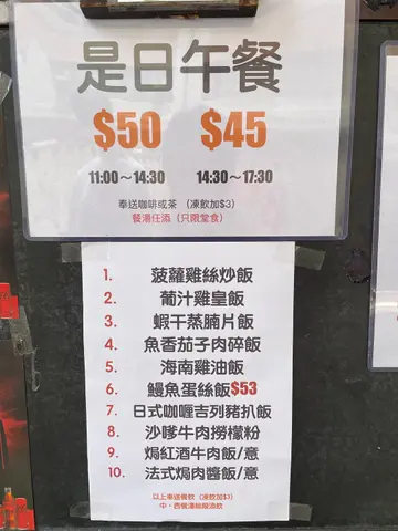 我人生第一个食评比咗呢间95搭8嘅餐厅。我同9个朋友尼食嘢,坐最入嘅位,但系冷气吹住我地,其实好冻好辛苦。但系我地问楼面可唔可以较细啲个冷气,个女楼面态度极差,仲叫我地坐第二到。其实我地10个人已经坐低晒,较细小小个冷气完全唔难,我都有返餐厅楼面,攞个遥控器较下就得,gum一gum个swing等部冷气唔好吹住我地就得,楼面唔合作嘅态度令我地觉得好唔舒服。另外早餐份量少得可怜,我食C餐鱼柳+炒蛋+牛油多士。但系鱼柳得半个手掌咁大,茄汁都得10粒左右,炒蛋劲浅色沟好多水,多士得半块。呢间Cafe简直不知所谓。