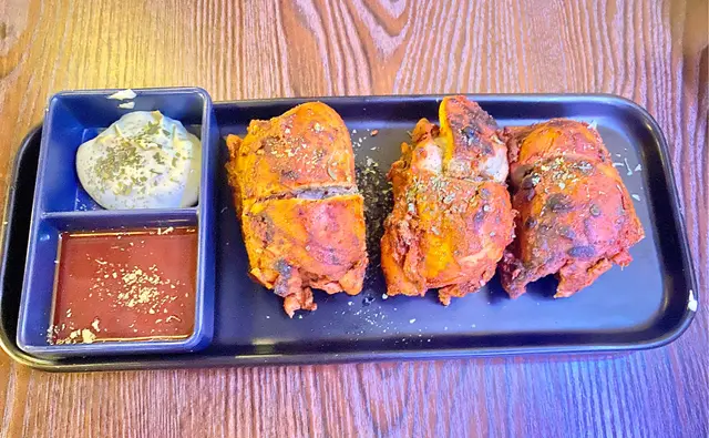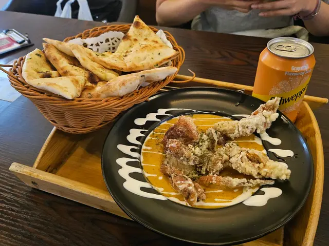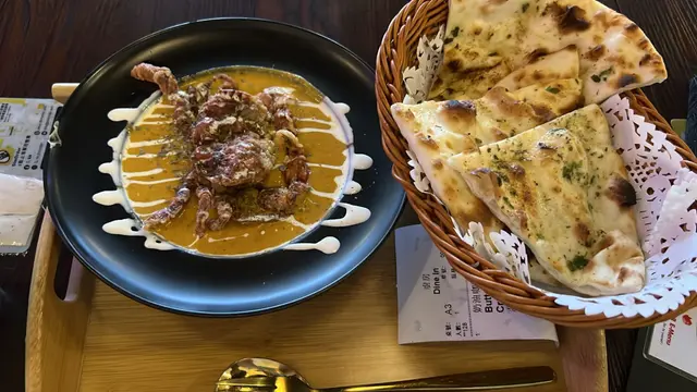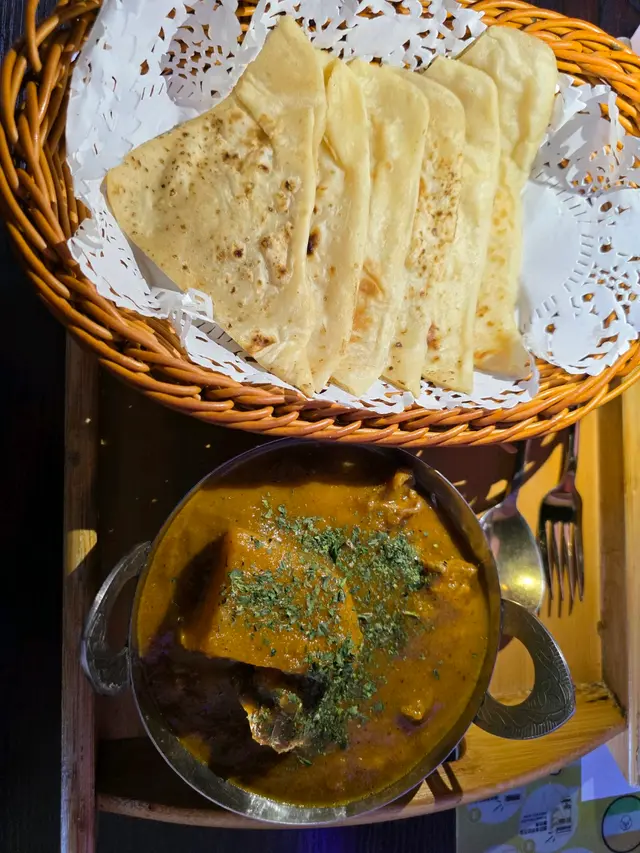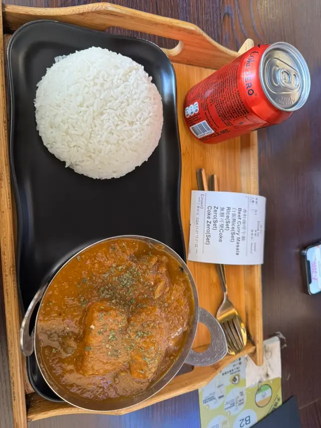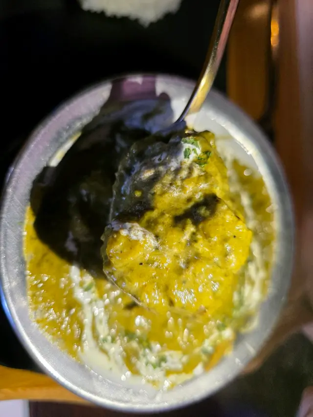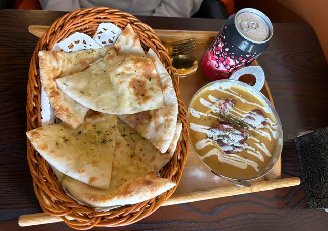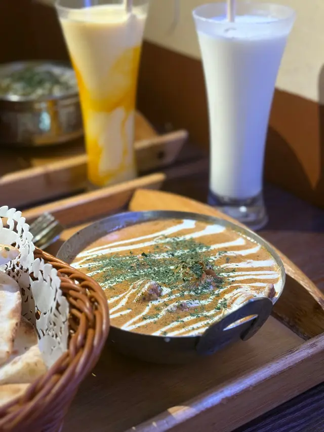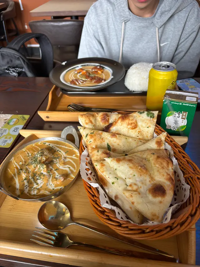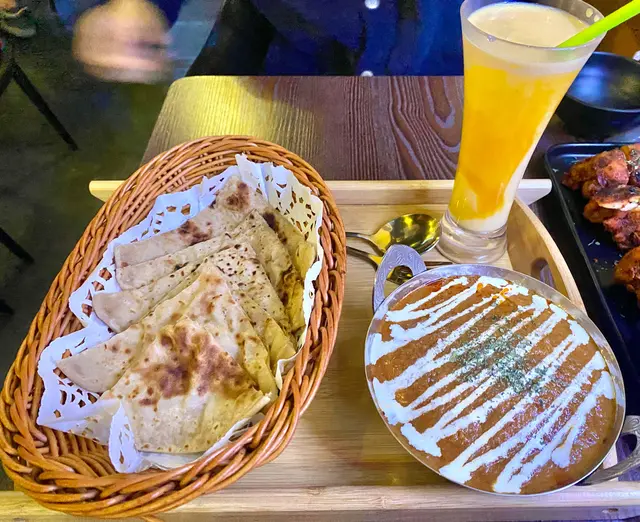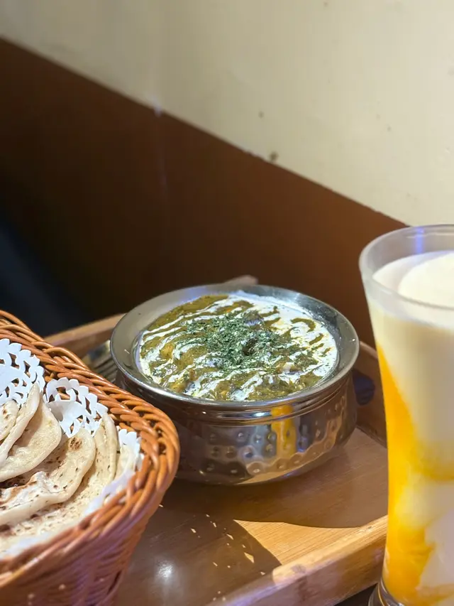 呢間餐廳位於工廈入面高層,環境可以望到山景,感覺好chill同開揚,入面播放住印度歌,餐廳仲有好多七彩顏色獨特既燈飾,好有feel。我地叫左一份咖喱牛腩配薄餅,薄餅沾上咖喱汁都幾香口,咖喱比較甜身唔會好辣,呢度係食印度菜,餐廳位於工廈上面所以價錢比較抵食。菠菜燴羊腩飯,呢個係用左印度香料去煮特製醬汁,菠菜汁比較健康,飯既份量都幾大碟。QR code落單方便,飲品印度拉茶飲落好濃郁地道香料奶茶味,比較特别。…查看更多
