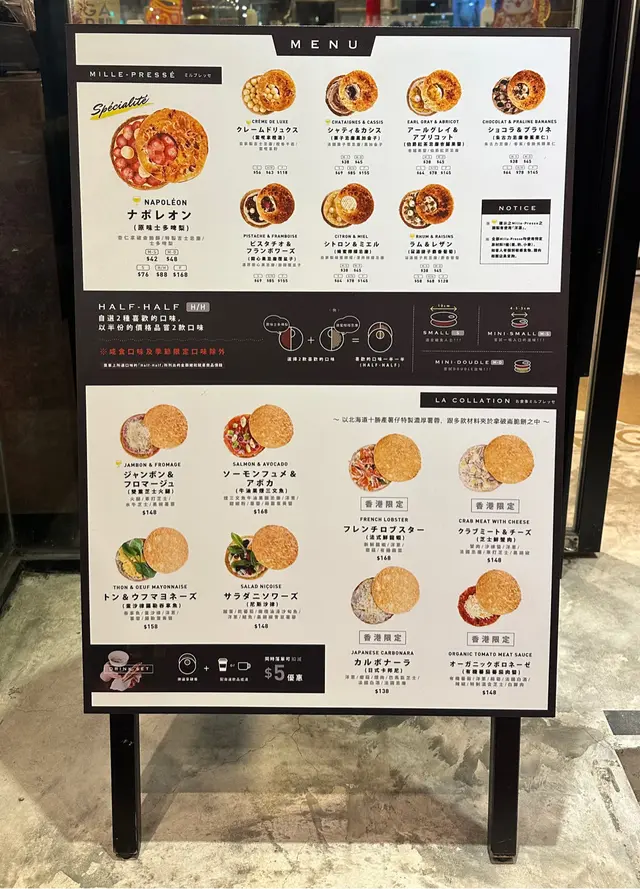 終於來左食呢間🔥大熱嘅🇯🇵日本過江龍💫拿破崙法式千層酥,🤩件件都係即場整,💕精心製作,用料新鮮👍!🍓原味士多啤梨🍓士多啤梨係呢度嘅招牌必試,特製嘅吉士忌廉醬上面有🍓片片士多啤梨,🤤新鮮香甜,拿破崙酥嘅面上🥨鋪滿焦糖杏仁,質感非常鬆脆!🍯蜂蜜檸檬忌廉呢個味道大推!吉士忌廉醬上鋪滿粒粒嘅🍋檸檬,然後再點上🍯🐝蜂蜜,食起來香甜可口亦帶點🌱清新!我地叫左兩個🌟Mini Pie,分別係🍵抹茶麻糬同埋☕️伯爵茶果仁。🍵抹茶麻糬嘅Cream好濃郁,配埋👅煙韌粒粒麻糬!☕️伯爵茶果仁🥜嘅☕️伯爵茶味突出,加埋🥜果仁更加有口感!Read More