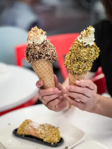 近排网上介绍个个都冲去食,系好吸引嘅开心果+gelato组合,两样食物本身都系贵价唔平,所以加埋更加唔平😂依间gelato店系尖沙咀都好多年,但最近就因为开心果热潮无端端弹返出嚟大热😂仲有开心果Menu推出多款蛋糕甜品.开心果转转筒 $68/单球系满满嘅开心果碎😍配上开心果Gelato质地软滑,有开心果味不过唔浓同偏甜,cone边都有开心果碎,但cone太重焦糖味好甜,比较威化饼味道,整体都几失望,唔算好食🥲就咁普通口味一球gelato都$65,加$3有满满嘅开心果碎 我觉得可以嘅,但都系偏贵㗎啦😂.开心果tiramisu $68依个难食到唔知点写,同朋友食咗两啖就放弃了🥲质地系cream状,少少似木糠布甸质感,总之系唔好食!无开心果味,完全系色素cream….完全唔知食紧咩…查看更多