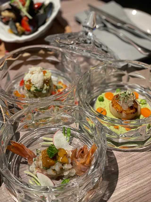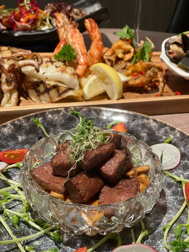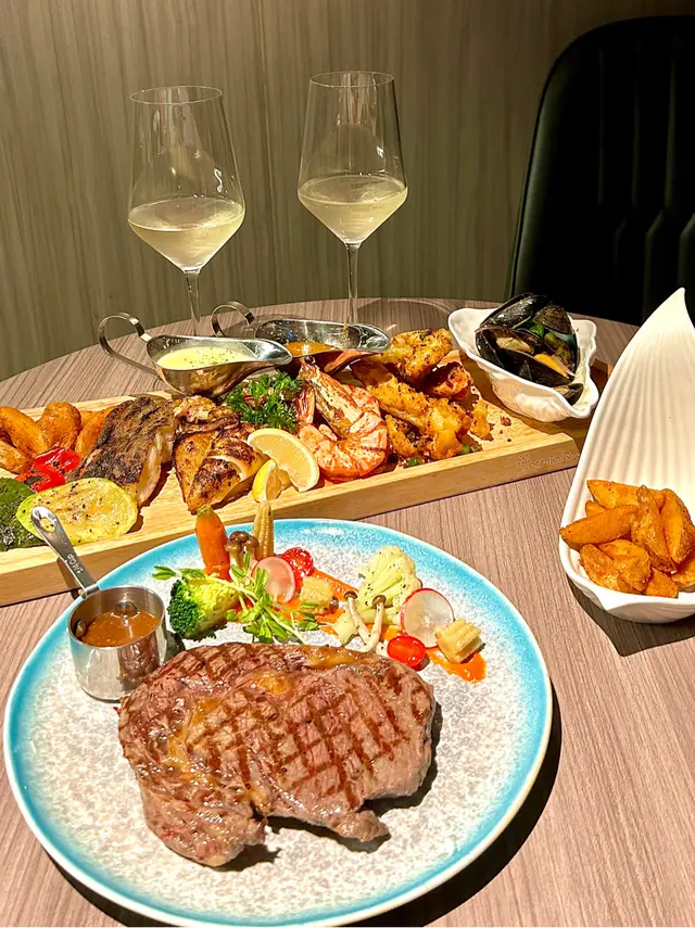 尖沙咀呢個黃金地段,閒日夜晚都係得兩三檯客,仲話夜繽紛🫠不過呢間食物擺盤有心思,食物又有水準,服務誠意十足,四個女仔人均$250左右,已經飽到連甜品都食唔落,整體性價比幾高,真心值得支持下🥹▪️ 牛油菓醬蟹籽青瓜 (7.5/10)💲+30叫海鮮拼盤可以用優惠價加購兩款小食😱牛油果醬幼滑,配上脆口蟹籽同青瓜粒,不失層次感同味道🥑🥒▪️ 紅菜頭烤南瓜水牛芝士藜麥沙律配芒果熱情果汁 (7.5/10)💲+30紅菜頭草青味唔重,加上酸甜紅莓醬幾開胃🥗▪️ 脆炸南瓜野菜意大利飯 (8/10)💲118呢款賣相似中式糍粑,味道都有驚喜喎😳外皮薄身香脆,包裹住南瓜蓉既意大利飯,口感粒粒分明🎃▪️ 海鮮拼盤(兩人份) (8/10)💲388雖然話係二人份,但其實個量都幾多🤤香煎比目魚:皮脆肉嫩,配個檸檬牛油汁🧈香煎虎蝦:肉質爽彈🦐白酒煮青口:青口比較細隻,但都有酒香烤原隻魷魚:彈牙香口,配個泰式酸辣醬🌶️炸軟殼蟹:口感酥脆伴碟有脆身薯角同埋烤雜菜贈送兩杯意大利白酒/果汁/汽水🥂▪️ 香煎肉眼扒(8安士) (7.5/10)💲258叫左五成熟,雖然切開似七成,差咁少少肉汁,但都唔會話韌,肉味尚算香濃,仲有三款醬汁可以選擇,我地要左香草紅酒汁🤓下次會想試埋佢既烤肉拼盤🍖🔎 整體評分(8/10)…查看更多
