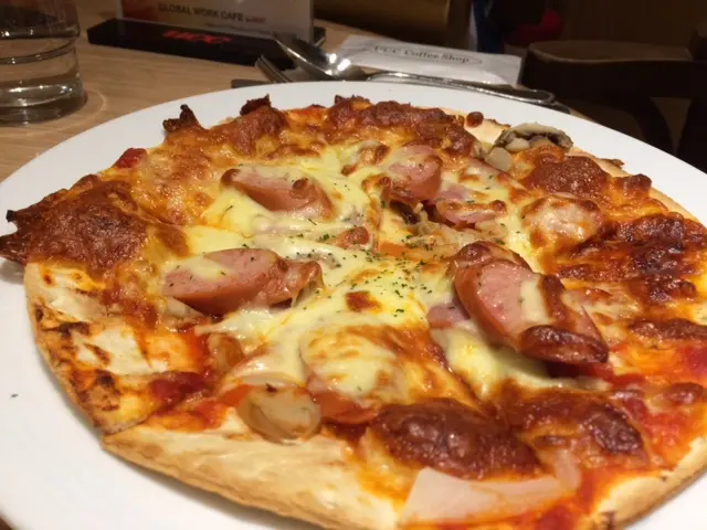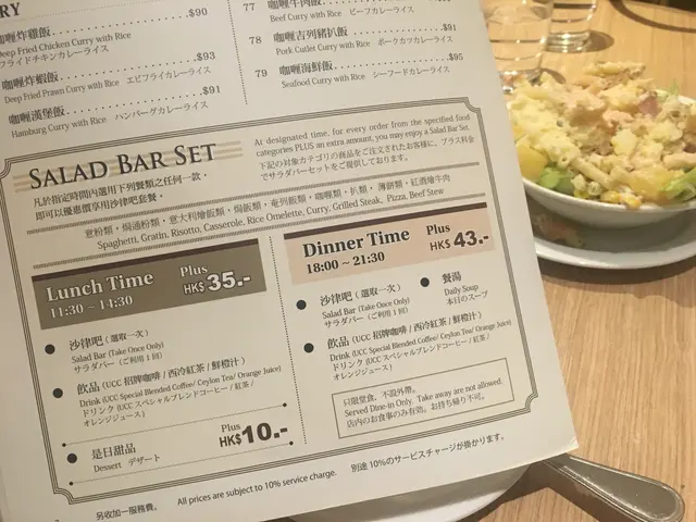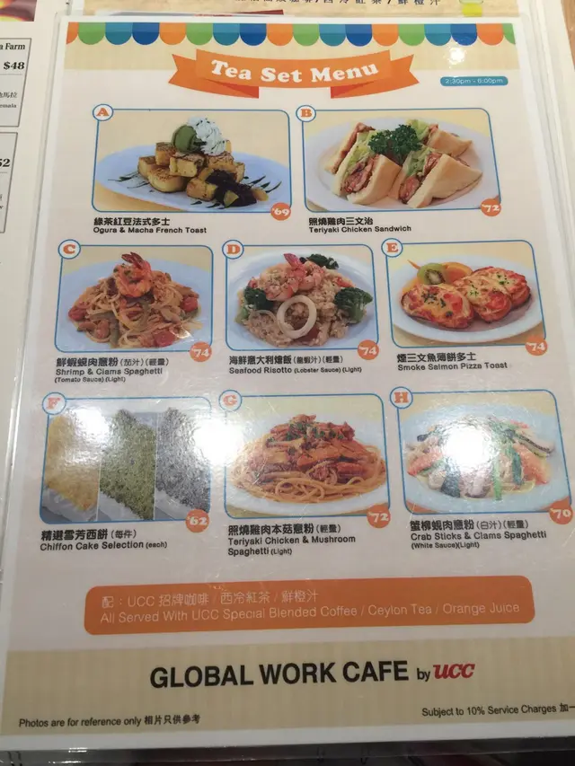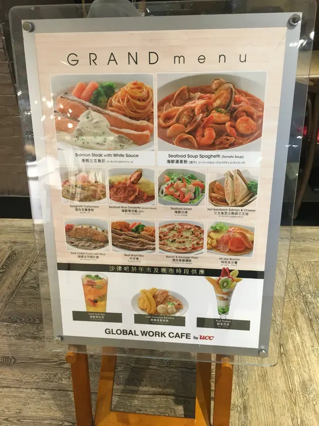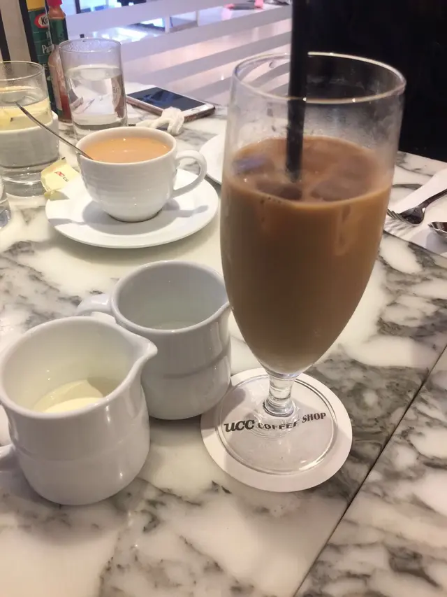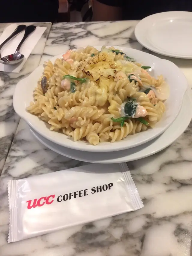 不知道大家有沒有發現「UCC」在銅鑼灣有四家分店的喔!兩家在Sogo,一家在銅鑼灣廣場一場,最後一家就是世貿這家!!而且這家的店名也有少許不同的喔~連帶Menu當然也有點不一樣吧首先這裡加$35可以享用一次的沙律吧!店員會給您一個碗,就自己出去盛沙律。基本上有一般的沙律配料~像是車厘茄、粟米、啫喱糖等等。沒想到這裡還會有薯仔沙律!!主食~我點的是 - 漢堡奄列飯 配牛肉汁 ($102)蛋並沒有想像中的滑嫩,這個倒是有點失望呢... 幸好包著的炒飯還滿香滿好吃牛肉汁也很惹味~而且汁的份量亦足夠吃完整個飯!漢堡吃落則不會很乾,肉汁並沒有流失掉,大概是因為有著少許肥肉的開係!?另外還點了 - 特色全日餐 ($63)這個的奄列比前者的滑嫩得多,當中的餡料是番茄、洋蔥和蘑菇。另外還配了煙肉、香腸、炒薯粒~ 整體有點鹹。加錢除了有沙律吧外,還配了一杯餐飲。招牌咖啡的話不用加錢~這分店的咖啡更香 (我妹只是聞的就說這很苦XD)但加了奶後就沒有了那種「苦」的味道,而且口感極為香滑!…查看更多