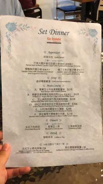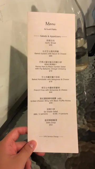 位于工厦内的西餐厅,Go Inside表意是请人内进,语带相关的另一个意思是提醒人们重返本心,让人聆听自己内心声音,重拾追求梦想的热情,为一个孵化不同年青人的梦想实践咖啡店,鼓励年青人「做。真自己Being Truth to Yourself」。