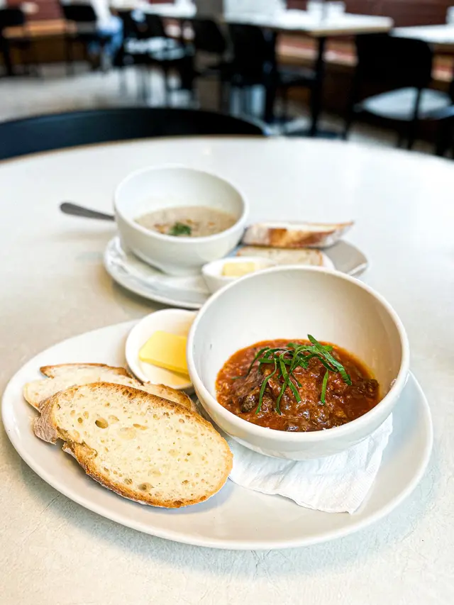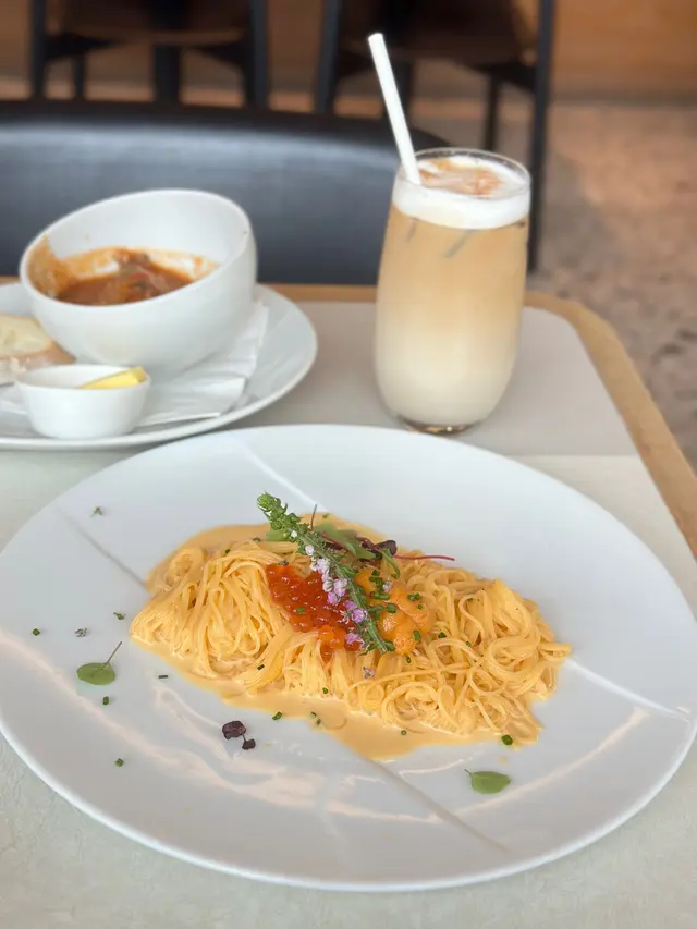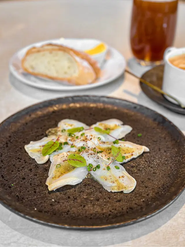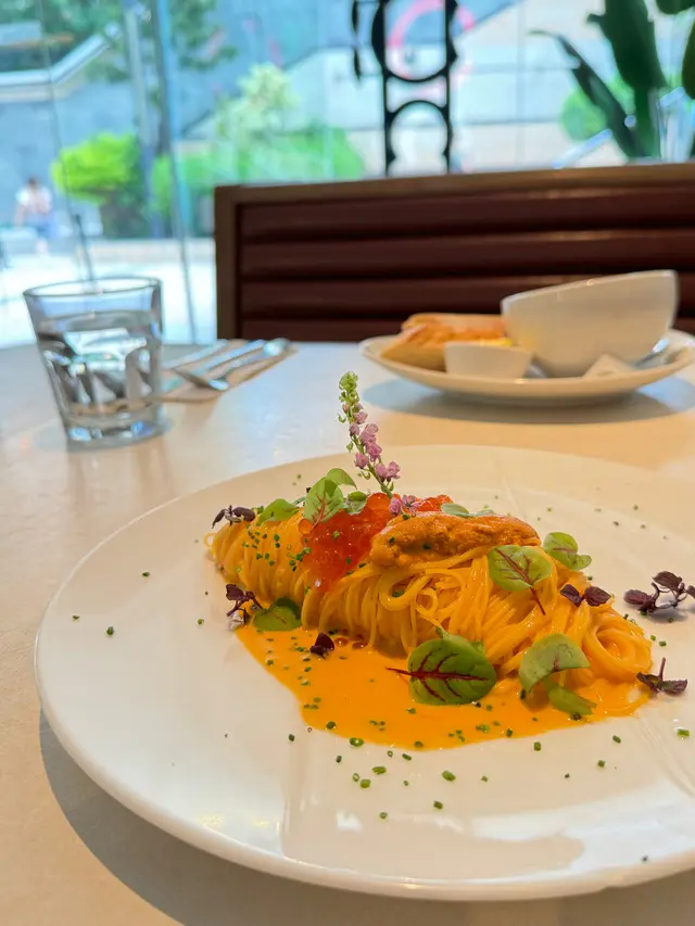 ༺Gochi༻餐廳環境舒適寬敞,推薦坐玻璃窗位置😚Weekday Lunch Set$138起,包前菜、主菜及飲品,加錢可升級菜式及甜點,價錢好抵食🥳🪄︎︎◝✩ 𝙁𝙤𝙤𝙙 𝙍𝙚𝙫𝙞𝙚𝙬 ⤵➳ Lunch Set($138up)➳ 餐湯+法國麵包➳ 和牛肉丸+ 法國麵包(+$20)推薦和牛肉丸,肉質嫩帶牛脂香😆再配上蕃茄汁,好好味🥰餐湯是蕃茄湯,點上法國麵包剛好!➳ 北海道帶子明太子意粉(+$20)➳ 海膽三文魚子冷天使麵(+$38)冷天使麵有滿滿的海膽味,海膽無腥臭味,微甜~ 冷麵十分幼很掛汁,而且很適合夏天吃😆 可惜明太子意粉有點乾🙈➳ 提拉米蘇(+$10) ➳法式焦糖布甸(+$15) 提拉米蘇重咖啡味,手指餅鬆軟,芝士軟滑,味道不錯🥰法式焦糖布甸外脆內甜甜的😙…查看更多