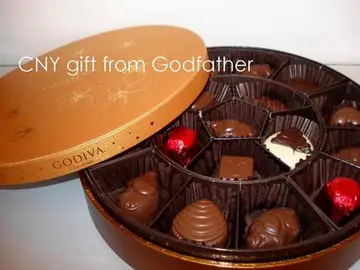 由于贴错相,这张图都爆光了。既然如此,顺水推舟,快快推出这篇食评吧! 要讲返上个月:为食的我,每年生日都会收到一些吃的,但今年收的特别大份:Godiva朱古力月饼!OR曾经介绍过这款尊贵月饼(http://www.openrice.com/big5/article1.htm?article_id=1278 ),在此不重复了,只讲讲味道。 三款口味包括:Lune Iconique (牛奶巧克力配纯巧克力酱)-即是中间的「圆月」,可可纯度达50%,因此有浓郁、纯正的朱古力甜香,是三者中最好味的一款。Iconique Dark (纯巧克力配百香果白巧克力酱)-有5粒,由于是黑朱古力,家人吃来觉得太苦。Iconique Milk (牛奶巧克力配榛果蓉)-有4粒,口感十分细滑,不过我嫌它过甜。 味道是不错的,不过份量很小,除了中间的「圆月」,其余「九星」都十分袖珍,比平时在Godiva秤的朱古力还要小。这样就$360,以份量计真的好贵好贵!不过想一想,就是因为我自己不舍得买来吃,所以送礼才有意思。一次够哂啦,多谢朋友仔的甜蜜心意,并预祝大家中秋节快乐~ ;)…查看更多