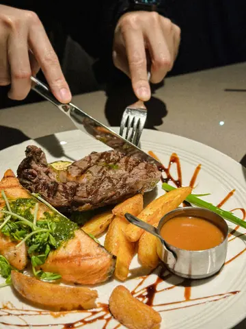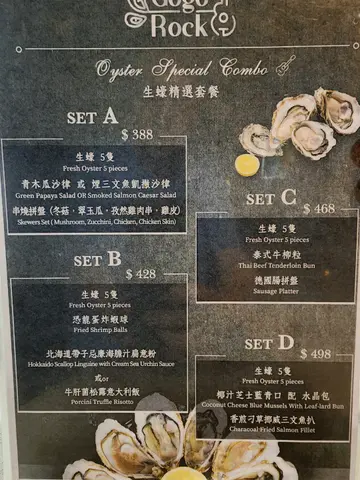 今晚等Duck嫂🦆放工去食晚饭,佢话同事推介公司附近有间质素同格调都好正嘅西餐厅“Go Go Rock”🥰,当然要去试下啦😆!店舖装修以深蓝灰色为主,灯光柔和加上墙身小量装饰🤗,令人感觉非常舒适放松,好Chill🥰。另外,餐厅逢星期三、五、六,晚上9️⃣点至1️⃣1️⃣点更加有Live Band🎸表演。恐龙蛋炸虾 $98用虾胶🦐包著原只鸭蛋🥚一齐炸,虾胶🦐炸得外脆内软,口感弹牙带虾味,鸭蛋🥚蛋黄味香浓,做到流心效果,令整体口感更丰富🥰。香煎牛柳伴鹅肝 $308牛柳🥩表面煎得焦香,7️⃣成熟成度刚好,肉质软嫩又juicy😋,鹅肝煎得香口,口感绵滑,入口即溶😍。配菜同样精彩,有香甜嘅车厘茄🍒,炸得香脆嘅紫薯片🍠及幼滑之中又带有质感嘅薯蓉🥔(因为混入咗碎薯粒),我和Duck嫂🦆都觉得非常好食😍。原只日本鱿鱼酿意大利饭 $148原只鱿鱼🦑摆盘效果非常靓,鱿鱼味道鲜香😋,口感弹牙,意大利饭🍛煮加入酸忌廉嚟烩,饭粒软硬适中,味道微酸又有忌廉香味🥰。Mojito $78薄荷🍃加上柠檬🍋,味道清新怡人,混合冰凉嘅梳打及酒精,感觉零舍透心凉🧊。Long Island $78可乐🥤遇上烈酒再加冰,配搭简单但系好饮😊,好耐未试过咁好饮嘅Long Island💯。总括而言,食物质素真心系好,服务如果1️⃣0️⃣0️⃣分系满分,我会俾够1️⃣5️⃣0️⃣分💗,店员好耐心同埋清楚咁解释餐牌上嘅食物,赞。另外如果中意食蚝就啱哂啦,餐厅系有新鲜蚝吧🦪,除咗有生蚝精选套餐内,餐厅仲做紧买3️⃣送1️⃣优惠,钟意食蚝嘅人要留意啦。…查看更多