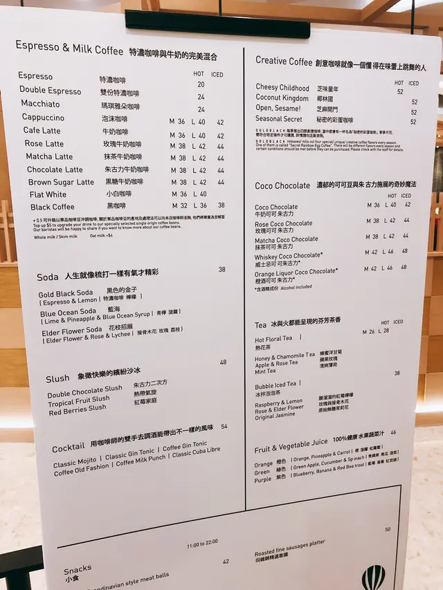 GOLDBLACK在香港就只有一家分店 裝潢黑色為主 十分型格 除了一般的咖啡 這裡還會有一些創意咖啡 來得這裡當然要試有別其他店的作品 從網上及職員介紹下得知店中的coffee都是指定用Goldblack house blend的咖啡豆 偏深度烘焙 層次才會豐富 會有一點點的酸性 強烈香氣 和淡淡的堅果 caramelised的味道我們點的gin tonic with espresso 的清新和咖啡的濃香撞在一起 入口時可能不太慣 又有炭酸的感覺 不過慢慢發現到回甘的味道時又會覺得兩者很相襯 最後的酒味會滲出來咖啡醇厚 酒精到位 (帶有CAFFEINE的酒精更快上腦 哈哈)…查看更多