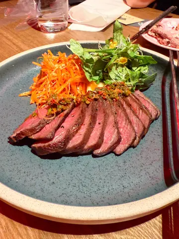 位于中环威灵顿街的ɢᴏʟᴅᴇɴ ɢɪᴘ,是 ᴄᴇɴꜱᴜ ᴄʀᴇᴡ 旗下第四间餐厅,由创办人佐藤俊主厨带领团队策划,并由主厨 ɴɪɢᴇʟ ᴋɪᴍ 坐镇。餐厅早前曾于西湾河以快闪形式试业,反应很热烈。最近终于落户中环带来更完整的菜单,餐厅概念以「家」为灵感,名字中的「ɢɪᴘ」在韩文中正是家之意,定位则是将大牌档的随意氛围的餐厅。.室内设计透过红色霓虹灯光,呼应香港旧日街头的标志性霓虹牌。餐厅入口更以大型灯牌作点缀,气氛热闹之余亦带点怀旧感。环境并非传统高级餐厅的拘谨格局,气氛轻松热闹。.除了用餐体验,餐厅亦融入艺术元素,场内展示多位艺术家的作品,让空间兼具餐饮与展览的氛围。料理方面延续 ᴄᴇɴꜱᴜ ᴄʀᴇᴡ 的一贯特色,主打亚洲菜式并融入韩式风格,既有熟悉的味道,又带来少许新鲜感。.✿ ꜱᴄᴀʟʟᴏᴘ 带子刺身配上提子味米酒,酸甜味道清爽,果香中和了带子的油润感。.✿ ꜱᴇᴀꜰᴏᴏᴅ ᴛᴀʀᴛᴀʀᴇ 各款时令海鲜刺身他他加入青苹果薄荷汁及西柚,酸甜带清香,配上带浓香芝麻的紫菜脆炸片,很香口的一款前菜。.✿ 囍 ᴍɪxᴇᴅ ꜱᴀʟᴀᴅ 韩式捞起以笋片及时令蔬菜组成,配上姜豉油汁,爽脆清新,味道简单直接。 .✿ ᴛᴜɴᴀ 拖罗刺身以韩式辣果醋调味,辣度温和,酸香之中带少许辣油香气,衬托鱼脂的甘香。 . ✿ ɪᴋᴀ ꜱᴀꜱʜɪᴍɪ 鱿鱼刺身搭配黄皮果和酸梅柚子醋,质感爽口,带点草本清香。.✿ ʙᴇᴇꜰ ᴛᴀʀᴛᴀʀᴇ 越式和牛他他以生牛肉配蛋黄,伴上虾片食用,酸汁带点韩式风格。.✿ ᴡʜɪᴛᴇ ᴋɪᴍᴄʜɪ ᴄᴏʟᴅ ɴᴏᴏᴅʟᴇꜱ 冷面以自家制白泡菜和荞麦面为主,清酸爽口,加上鱼生粒点缀,口味清新。 .✿ ᴛɪᴘꜱʏ ᴄʀᴀʙ 全晚重点期待的环节就是一客绍酒醉酱油蟹带酒香,另可加配饭及海苔,拌匀后咸香惹味,颇有韩式家常感觉。 .✿ ʜᴏᴛ & ʜᴏɴᴇʏ ɢɪᴘ ᴄʜɪᴄᴋᴇɴ ᴡɪɴɢꜱ 蜜糖麻辣鸡翼炒上干辣椒和花椒,甜辣并存,外层香脆。 .✿ ɢᴏʟᴅᴇɴ ᴘᴏʀᴋ ᴋᴀᴛꜱᴜ 黄金吉列脆猪扒炸得酥香,伴上腌红苋、烟熏车厘茄酱及芥末沙律酱,带酸甜与辛香。 .✿ ᴄʀɪꜱᴘʏ ᴇɢɢᴘʟᴀɴᴛ 椒麻茄子天妇罗外层香脆,配上山椒汁,口感对比明显,咸香中带微辣。 .✿ ᴡᴀɢʏᴜ ʙᴜʟɢᴏɢɪ ᴀ4 和牛片配什菜快炒,肉质油润,带微辣,口味偏向韩式家常风。 .✿ ᴘᴏʀᴋ ʙᴇʟʟʏ 慢煮三十六小时的猪腩肉烤过后配生菜包,酱料咸香,油脂化开很惹味。.✿ ᴛᴀɢɪɴᴇ ᴘᴏᴛ ᴡᴀɢʏᴜ ʙɪʙɪᴍʙᴀᴘ 热锅韩式和牛拌饭以多款蔬菜及带子高汤调味,饭焦香脆,拌匀后味道浓郁。 .✿ ʙᴇᴛᴛᴇʀ ᴛʜᴀɴ ʏᴏᴜʀ ʙʀᴇᴀᴋꜰᴀꜱᴛ 甜品焦香白兰地配云呢拿雪糕,带海盐焦糖咸香还有焦糖化的棉花糖,甜中带酒香。 .✿ ᴛ.ᴛ ᴄᴀᴋᴇ 2.0 泰式奶茶蛋糕带茶香,伴冧酒提子雪糕和焦糖香蕉,很不错。.✿ ᴡʜᴇʀᴇ’ꜱ ᴛʜᴇ ʙᴜɴ 芒果蛋奶冻伴乳酪忌廉,加入椰丝和焦糖榛子,果香清爽,层次较轻盈。…查看更多