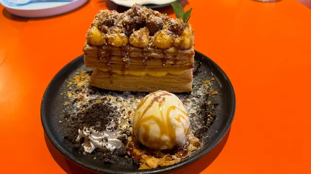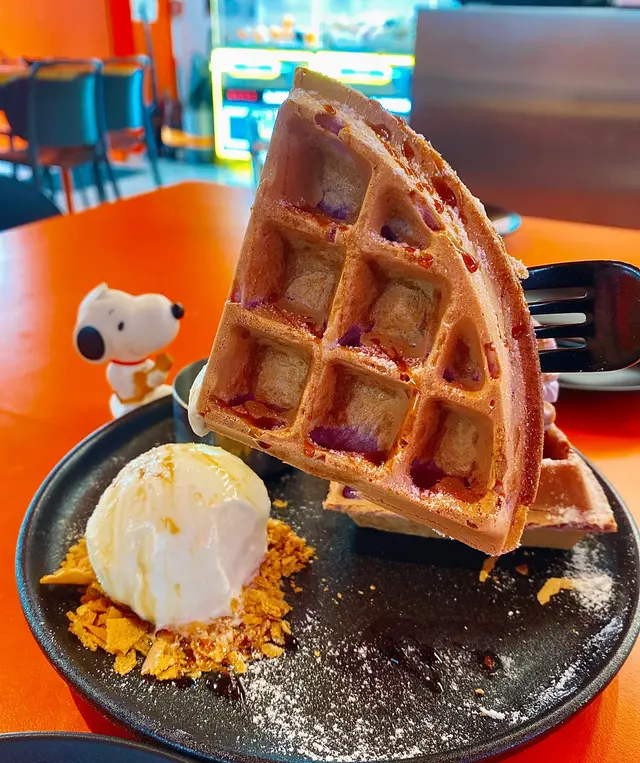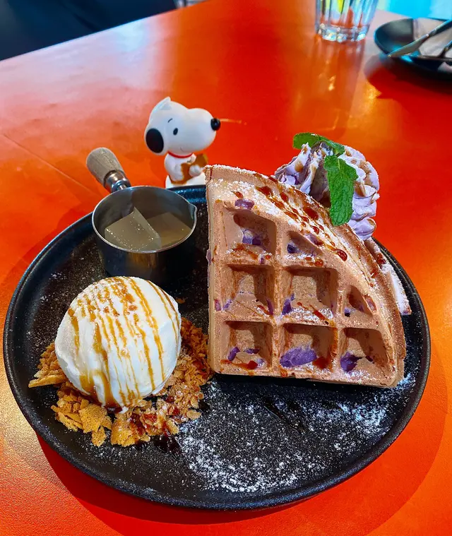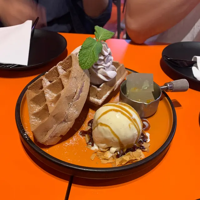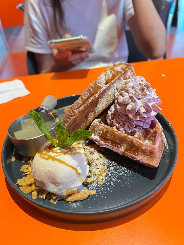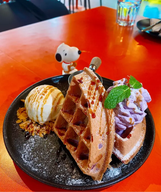 👍🏿紫薯麻糬窩夫配紫薯忌廉及雲尼拿雪糕 $88賣相好靚 有兩件厚厚嘅窩夫 一pat cream同一球雪糕~窩夫嘅邊邊位微微脆口 但真系好微同埋要即刻食先得😂中間就唔脆嘅食落好似麻糬咁 煙韌軟糯😳如果當佢系麻糬嘅話系唔錯幾好食嘅🤭但同expect嘅麻糬窩夫就有啲出入🥴佢冇窩夫嗰種脆 純粹系好有咬口嘅麻糬~甜度偏低 所以好似食緊冇乜味嘅甜品咁😅紫薯cream夠滑 帶少少甜味 配搭窩夫系ok ge不過感覺冇乜紫薯味😬雪糕都夠滑😙可惜太甜🫣但好好彩佢個窩夫淡淡地 所以連埋雪糕就啱啱好😂錯有錯着 不過不失咁啦~隔離仲有兩舊蘆薈啫喱 清甜有嚼口 ok嘅🤣味道: 7/10性價比: 6/10👌🏿梳乎厘班戟配比利時骯髒朱古力 $108嚟到嘅時候比佢賣相嚇一嚇😳同想像中嘅梳乎厘pancake有啲出入連味道都系🥴兩層扁扁地嘅梳乎厘pancake上面淋上大量朱古力醬擺入口同expect嘅一樣 完全唔fluffy😭冇空氣感嗰種軟熟嘅質感 比較實淨~至於蛋香…唔sure有冇 就算有都比朱古力味cover晒不過值得一讚嘅系佢嘅朱古力味好rich帶少少dark chocolate嘅香醇😳但加咗Oreo碎 焦糖同糖霜之後 甜度大大提高🥴如果就咁食朱古力pancake嘅部分甜度系啱嘅但撈埋其他嘢就甜咗啲🤏🏿香蕉本身都有甜味 加咗焦糖反而甜到有啲唔太自然😗雖然overall佢唔算伏 細佬👦🏻話ok好食但真系唔系史努比杯茶😌味道: 6/10性價比: 5.5/10*另設加一服務費*去得將軍澳海旁食嘢貴就預咗架啦不過味道普通不過不失 史努比覺得唔太值😬性價比唔高啦~試完唔會覺得話好伏 不過冇下次😂整體評分:味道: 6.5/10環境: 8/10服務: 7.3/10衛生: 8.4/10抵食: 5.8/10…查看更多