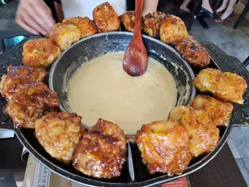 去韩国餐厅点都要食啲炸鸡或者焗鸡,而呢度食嘅就系焗鸡,唔知佢哋用咩方法整,焗鸡煮出嚟唔单止外皮好脆,入边嘅肉仍然好软熟同埋多汁。