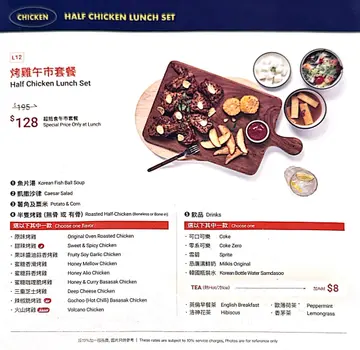 在韩国拥有过千间分店,主打非油炸烤鸡。这里的烤鸡以7种香料腌制最少24小时后再烤,鸡肉嫩滑且无油腻感。