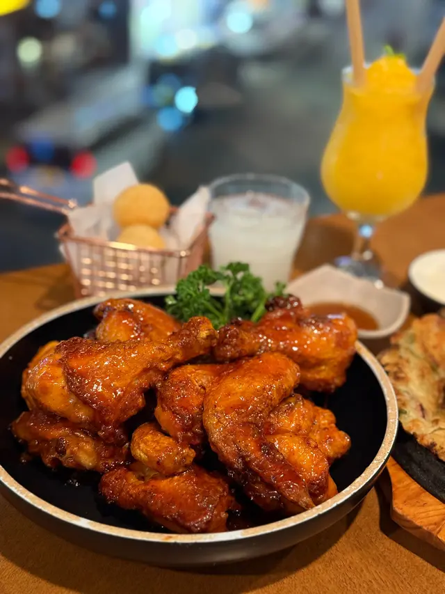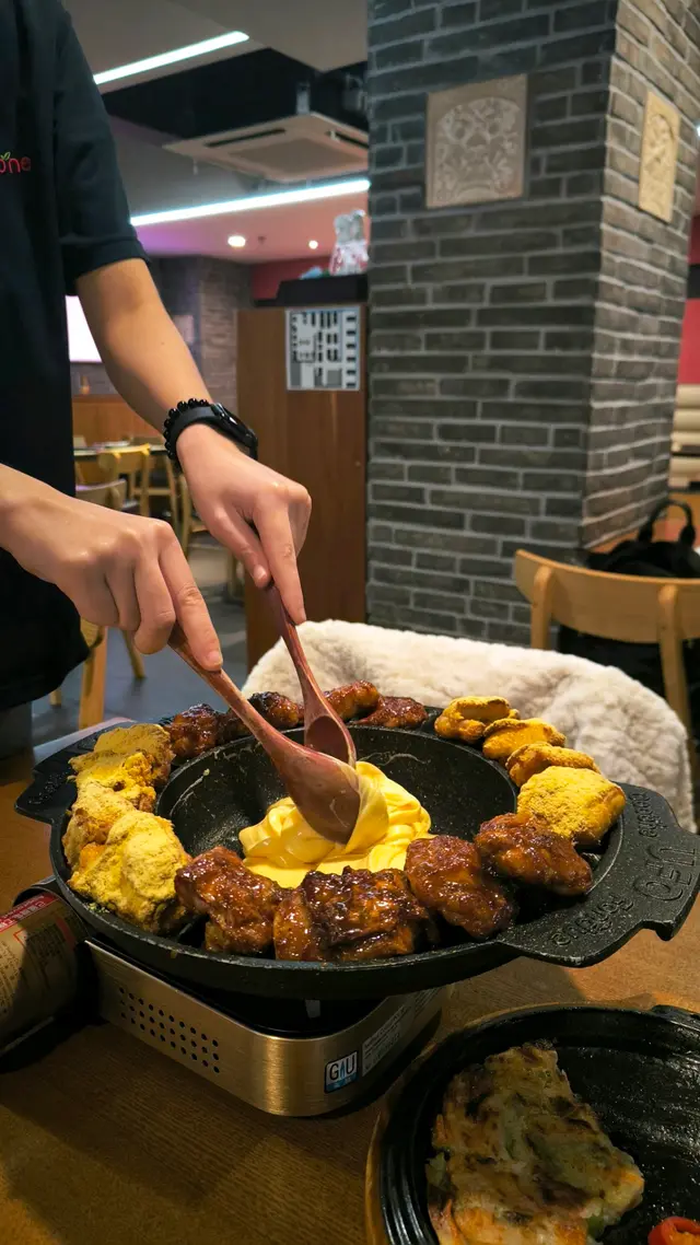 尖沙咀的「Goobne Chicken」是非油炸韓式烤雞,讓人大開眼界。先說美食體驗,它的招牌菜,原味烤雞絕對是必點之選。我們在食用的時候,雖然雞肉採用高溫烘烤而非油炸,但是它的外皮香脆可口,內裡肉質卻意外地保持著驚人的嫩滑與肉汁,完全沒有油炸所帶來的油膩感,吃起來更為輕盈無負擔。搭配的芝士醬鍋更是畫龍點睛,將熱騰騰的雞肉蘸上融化的芝士,口感與風味層次瞬間提升。再講環境與服務,餐廳的環境寬敞舒適,裝修現代時尚,帶有濃厚的韓式風格。服務方面,店員態度親切有禮,上菜速度合理,能及時為客人添加飲品,整體服務體驗令人滿意。…查看更多
