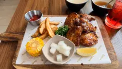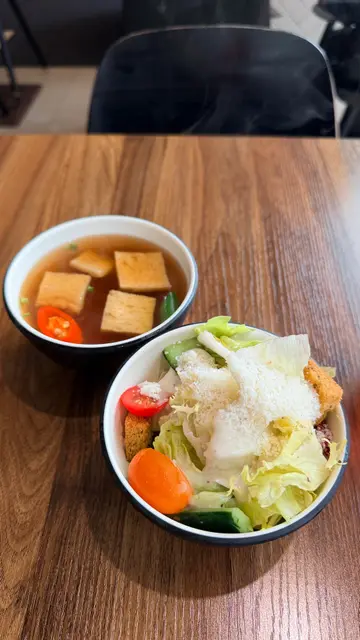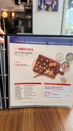 一支公,又好耐无食过烤鸡,而且个午餐烤鸡有十个口味可拣,确实吸引,相比假日个餐牌要几百蚊一份,平日午餐抵好多。洛神花茶唔甜,淡到无乜洛神花味。凯撒沙律充满芝士碎,面包粒脆口,一啲都唔hea。鱼糕汤够味,无乜油份都几清。果味酱油蒜香烤鸡,皮脆肉嫩又有肉汁,酱油有蒜香又够味,唧少少柠檬汁增加层次,好好味。