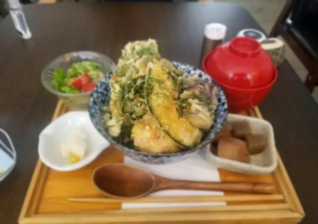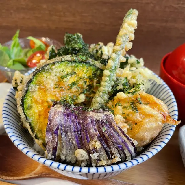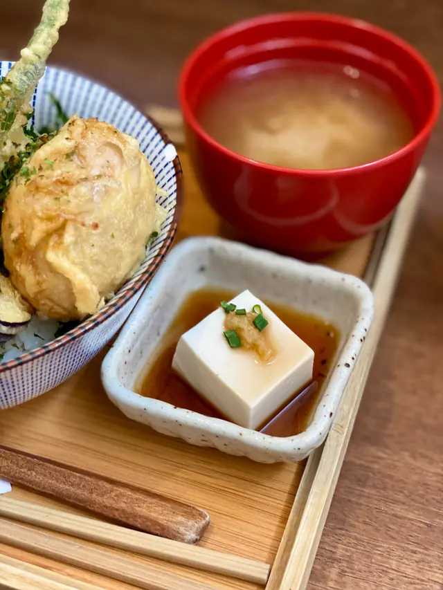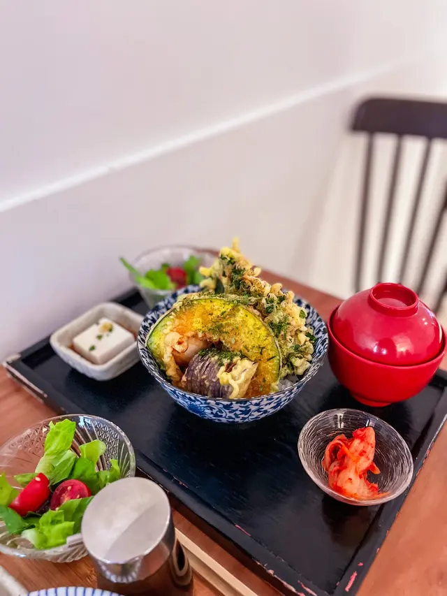上半場去西營盤食好西!五目天丼$118呢個天丼好食到不得了!!一共五款天婦羅:羽衣甘藍、南瓜、茄子、法邊豆、溏心蛋~天婦羅全部都炸得十分完美!羽衣甘藍好香脆!南瓜帶少少甜,口感外脆內軟!茄子食落新鮮,一樣係外脆內軟!法邊豆咁樣食幾過癮!溏心蛋又係正!蛋漿溶入埋飯入面真係冇得彈!仲有仲有!天丼最重要既仲有一樣野>就係醬汁啦!佢地個醬汁又係整得好唔錯!大大提升左呢個天丼既味道!定食包括:味噌湯、沙律、醃蘿蔔、豆腐全部都正!所以大家睇到我將呢個定食清得幾咁乾淨啦!菠蘿黑胡椒芝士蛋糕$68我要試試呢個估唔到既味道!出乎意料地!清新又好味!!蛋糕中間有少量黑胡椒,菠蘿肉,芝士蛋糕口感係比較實淨個種(我鍾意),旁邊伴碟有脆脆、鹽(應該係)、少少CREAM!整體都係冇得輸!下次黎要試下芭菲杯呀!(如果個肚有位既話)查看更多