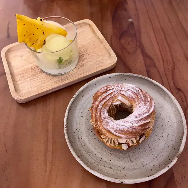 ⭐️菠蘿嘅海係款幾特別嘅甜品 燒菠蘿香甜菠蘿紫蘇雪葩 好清新 冰感唔重菠蘿忌廉芝士 幾香滑梳打水啫喱 零甜味 好清爽 有種氣泡感覺 幾特別燕麥脆脆底層 令到口感更豐富整體唔錯 層次豐富配搭好清新酸酸甜甜 好適合夏天食⭐️法式榛子泡芙泡芙鬆脆 中間夾住厚滑榛子忌廉 味道香甜 加埋脆脆嘅榛子口感更豐富 整體唔錯甜品味道唔錯 份量偏小環境服務正常 價錢少貴 定價進取 呢個價位都可以有幾多選擇所以值唔值就見仁見智 小店即將結業 有興趣嘅朋友盡早去查看更多