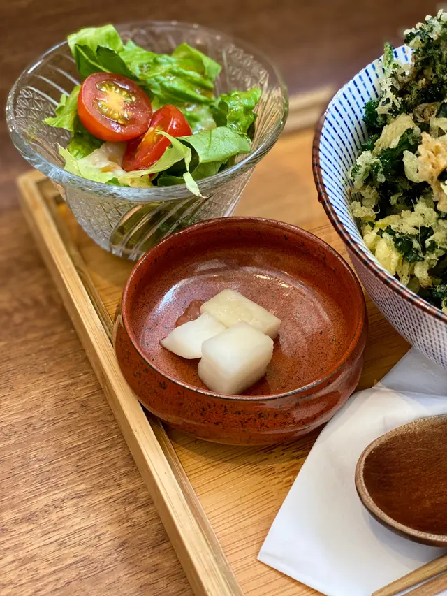 西環日式家庭料理以蔬食為主,仲有手作甜點環境好療癒呀聽說7月3日最後營業 (。•́︿•̀。)沒想到會是最後的第一次希望可以再encore▫️滑蛋菇菇飯午市定食包括左沙律、漬物同味噌湯柚子漬白蘿蔔粒好特別素食親子丼,有雞脾菇,蛋同菠菜葉菇同菠菜令口感更有層次蛋味香同夠滑,係健康嘅味道查看更多