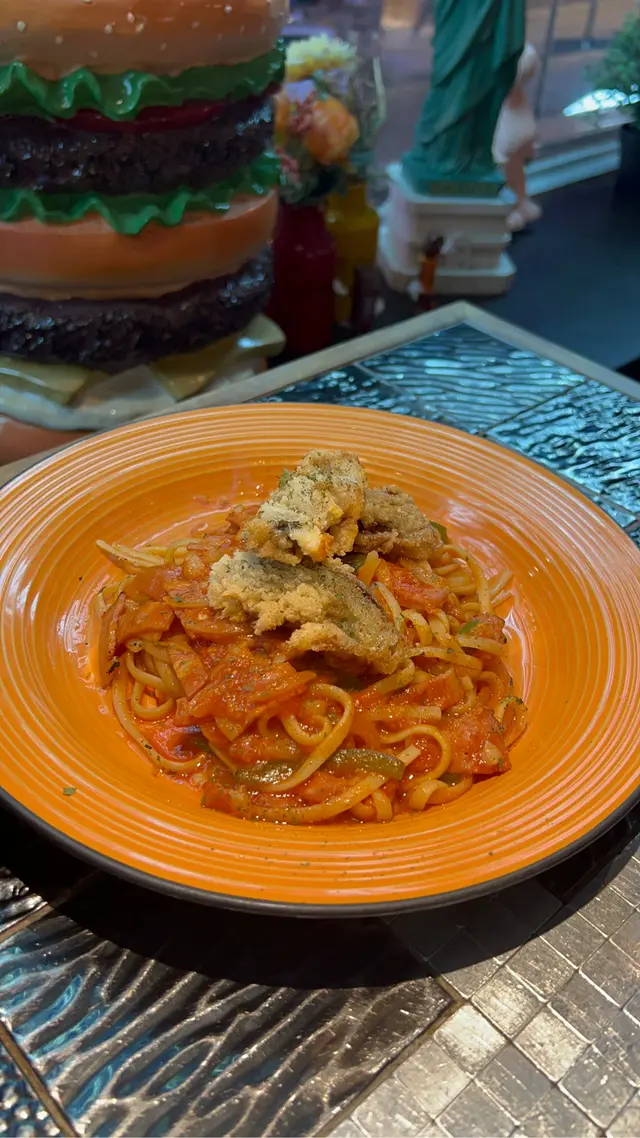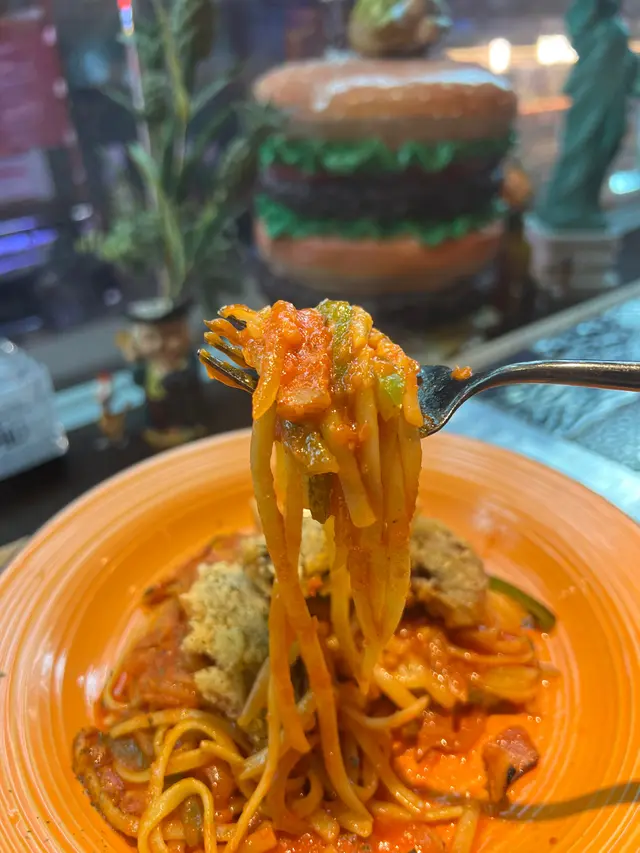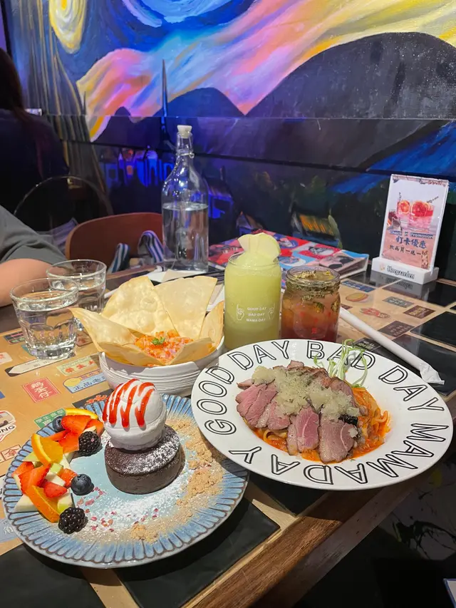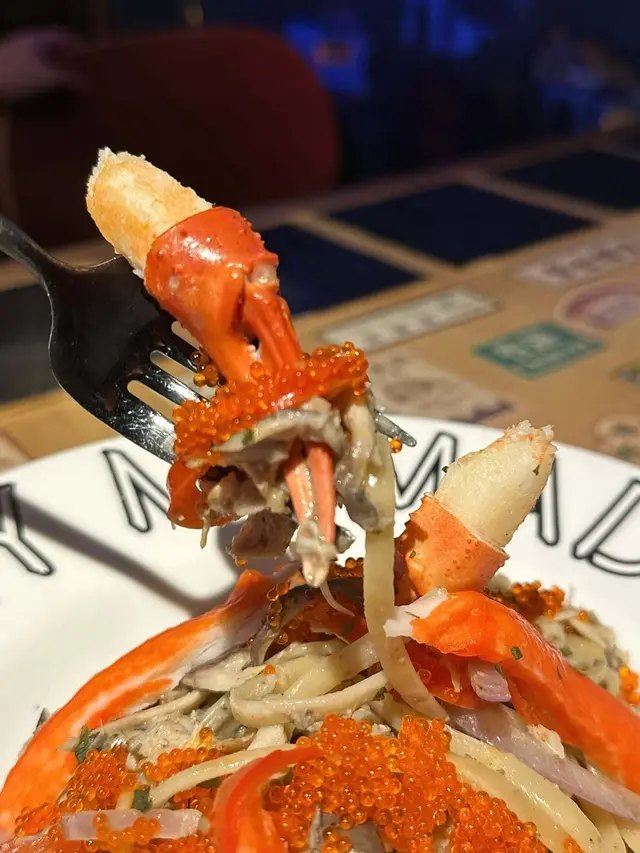 店名古怪但出品認真!由火焰表演意粉到原隻龍蝦壓場,每道菜都玩到極致,打卡食飯兩不誤~必點神級主菜:火焰北海道壕肉拿破崙意粉上桌即淋酒火焰狂舞(橙碟減戲劇性,但儀式感滿分!)意粉煮到Al Dente彈牙,醬汁收乾至每條掛汁唔滴漏,炸蠔脆到似天婦羅!壕肉嫩滑×濃醬=邪惡度爆錶原隻波士頓龍蝦意大利扁麵 震撼視覺!龍蝦霸氣伏在意粉山上→ 蝦肉飽滿彈牙冇欺場,扁麵吸盡蝦膏精華, 相機先食呃Like必殺技蟹GOGO甲羅燒龍蝦汁燉飯日式蟹膏×龍蝦汁神仙碰撞!→ 燉飯刻意煮偏冧(非傳統硬芯),龍蝦汁滲透每粒米,撈勻爆膏甲羅燒,鮮味核彈級轟炸!甜品飲品解膩攻略:• 是是但但窩夫(Oreo版)心形窩夫少女心爆發!鋪滿Oreo碎脆+瀑布奶蓋,冷熱交融罪惡得有理~• 自煮茶韻雙星:山楂果肉玫瑰花茶:嚼得到酸甜果肉,花香解膩洛神花柚子茶:柚子皮添香,熱飲原壺保溫超貼心體驗總結:✓ 火焰/龍蝦/蟹膏 | 每道菜都是話題王✓ 窩夫隨機口味 | 驚喜感滿分✓ 玩味裝修 | 適合搞怪打卡派對—「食指大動」已不足以形容,直情想搬屋住附近日日食!—…查看更多