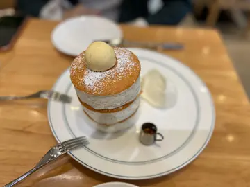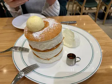 同朋友做完gym去食野嘅时候,经过呢间都几出名嘅pancake店。呢度最出名系个梳乎厘班戟,每日限量得三个时段会出炉。咁啱店员话就快有梳乎厘班戟出炉,所以就冲左入去
