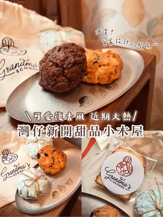 鬆餅小木屋隆重登場٩(ˊᗜˋ*)و!𝑮𝒓𝒂𝒏𝒅𝒎𝒂’𝒔 𝑺𝒄𝒐𝒏𝒆最近進駐灣仔 新開已經大排長龍!袖珍小店喺繁忙嘅街道顯得更可愛~祖母風復古裝修帶點家嘅溫馨感 店面雖小 但擺設充滿細節位招牌司康有8款口味 私心喜歡茶味麻糬、海鹽焦糖朱古力新開張有餐具鬆餅套裝 自家設計小餐碟好有質感 必定要收藏!其他甜點包括「檸檬磅蛋糕」、「瑪德蓮」都很不錯呢新品仲有「不銹鋼盒子蛋糕」外盒圖案同樣吸晴試左開心果焦糖香蕉味 開心果奶油超厚滑的說~配搭濕潤嘅香蕉蛋糕+底層嘅焦糖脆脆 口感味道都好有層次甜度略高但有食唔停口嘅魔力 (🐻一日內獨自𝗞𝗢全盒!)…查看更多