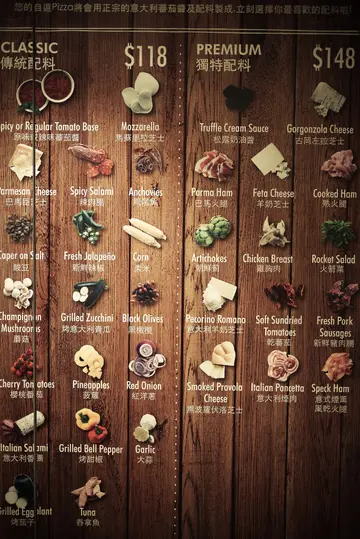 Pizza 款 式 多 ,除 左 咸 味 Pizza 仲 有 甜 味 既 Pizza ,而 且 仲 可 以 自 选 配 料 添