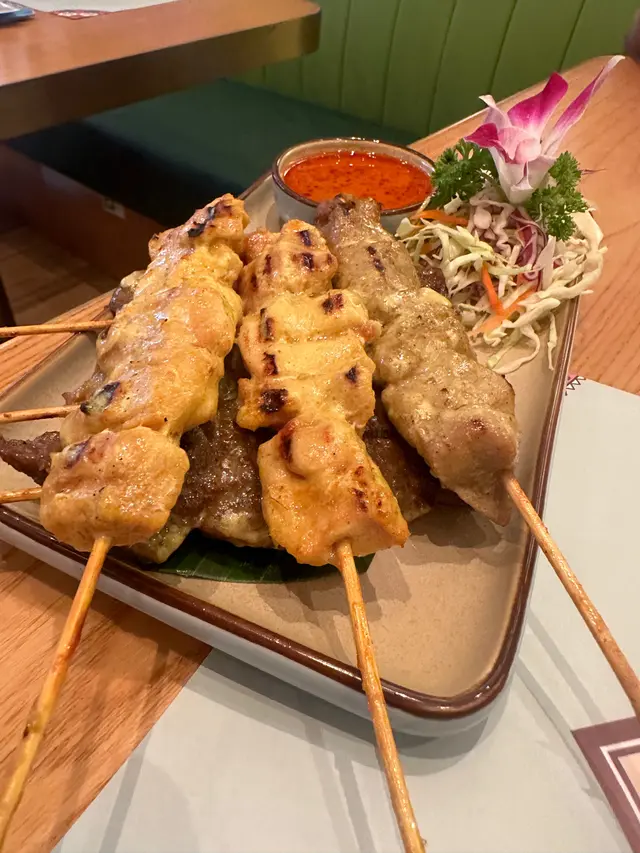 今日同友人入來黃金海岸慶中秋, 我哋揀左吃泰國菜, 揀左2人套餐😋, 叫左前菜, 一個肉碎🐽生菜包, 一個咖喱角乳酪小盤🍛, 主菜要印式咖喱雞🐔配白飯🍚, 要左蒜蓉🧄炒什菜, 另外加左一個雞肉串燒沙爹🐔, 再加多個甜品香蕉薄餅, 二枝啤酒🍻, 等左一陣肉碎🐷生菜包先到🥬, 味道整得幾好, 食落唔係太油, 不過就辣左dd, 但加埋生菜又幾好食👍, 之後送來咖喱角乳酪小盤👍, 依個第一次食, 味道唔錯, 入面有d薯仔同蔬菜之類, 食落好香😋唔算太辣🥰, 再之後送上沙爹雞🐔串燒, 依個就麻麻地, 食落太硬太乾😅😆, d雞肉好柴, 食唔到入面有肉汁, 唔建議叫, 再之後送來蒜蓉炒什菜, 食落唔油, 可以解下肉類的油膩😍, 印式咖喱雞🐔雖然唔係好辣, 撈飯ok, 不過d雞又係太乾太硬😂, 份量十足, 環境氣氛有情調, 傾計聚舊很不錯, 再之後送來香蕉薄餅🍌🍕, 食到少少香蕉天然香味, 塊餅食落唔係好油, 幾好味😁 而且二枝啤酒🍻這樣放出來, 真係幾特別😘👍…查看更多