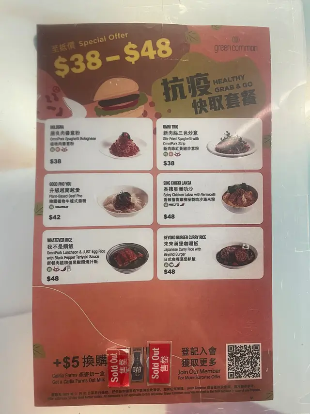 於是走到中環的Green Common開餐。餐牌不多選擇,反而令我倆更快知道要食什麼