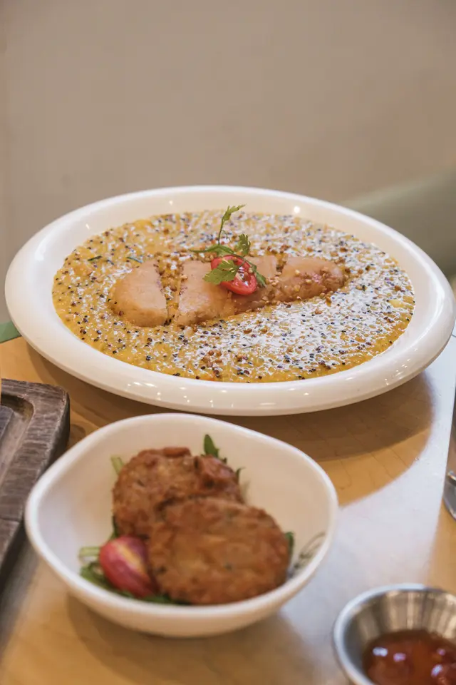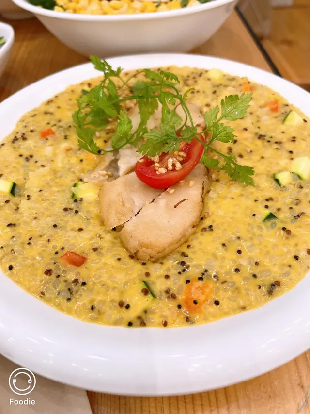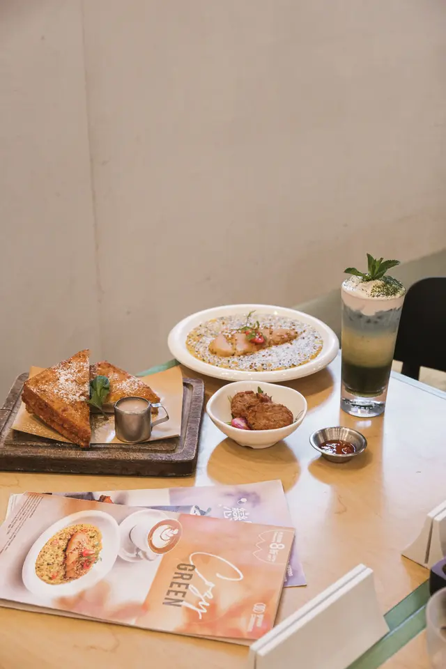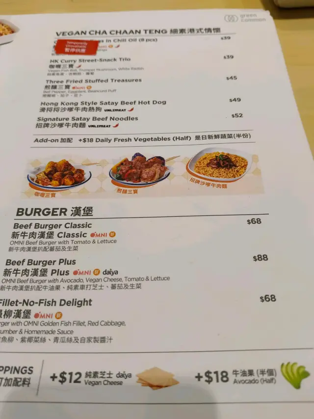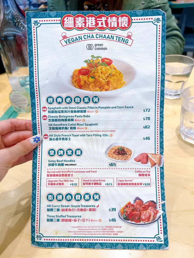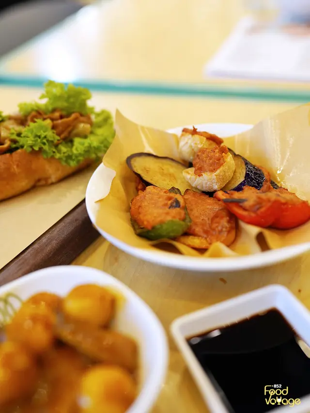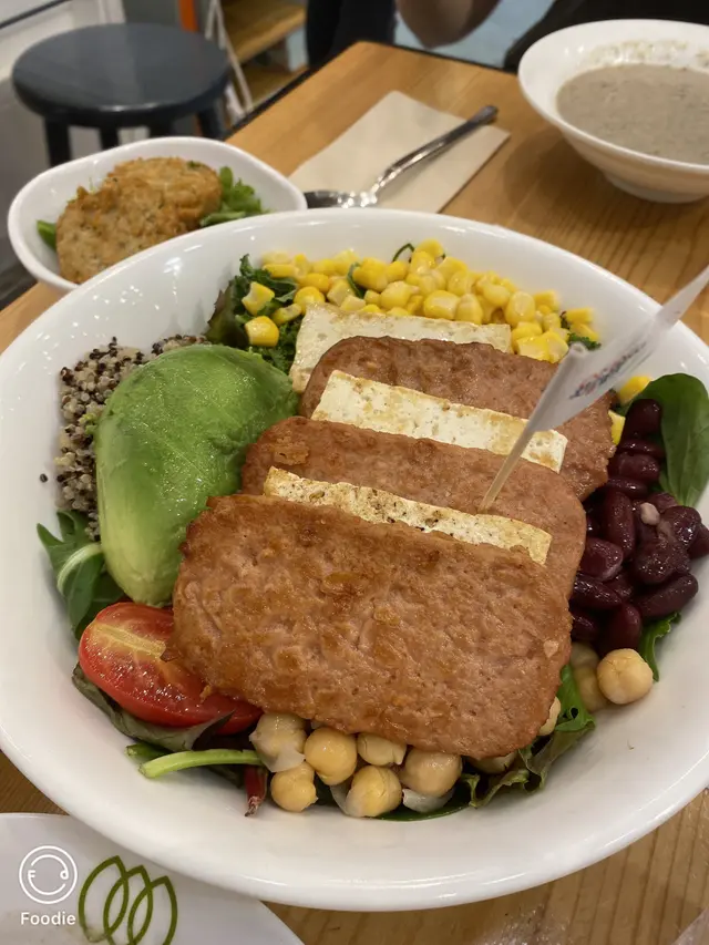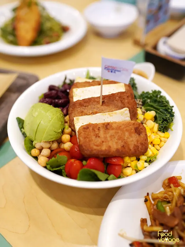 其實我好鍾意食素㗎,適逢2025新一年到來,我又發掘咗一間素食餐廳「Green Common」食下D全新創意素食料理。*此餐廳收取加一服務費。新肌肉能量碗(單點$98),好足料,採用新餐肉、硬豆腐、羽衣甘藍、紅毛生菜、藜麥、牛油果、鷹嘴豆、紅腰豆、車厘茄、粟米、花生醬製作;略嫌新餐肉食落豆味偏重、味道上不太類似午餐肉;蔬果食落好新鮮;花生醬味道濃厚,意想不到同沙律口味上都幾夾。葡汁新炸魚柳燴藜麥蒟蒻米(單點$98),表面鋪有炸蒟蒻米,食落脆卜卜;新炸魚柳口感外脆內嫩,食落帶有魚肉鮮味及輕微的豆味;葡汁採用天然香料、黃薑粉、椰漿製作,食落椰香濃郁;燴藜麥蒟蒻米口感Q彈,容易掛汁,類似食緊Risotto,配料包括有意大利青瓜、甜椒、車厘茄。蒜香炒雜菜(單點$48),採用秋葵、雜菌、甜椒、西蘭花、甘筍、椰菜製作,蘑菇、冬菇、草菇食落好Juicy,雜菜配以蒜蓉食用,食落好香口。新蟹餅2件(單點$24),即叫即炸,炸衣口感薄脆,新蟹肉食落口感一絲絲、帶有一點真蟹肉鮮甜的味道,還原度高,配以泰式甜辣醬食用,味道更佳。流心香芋西多士(單點$46),表面鋪有糖粉,西多士口感外酥脆內軟熟,食落蛋香味濃,內有芋泥,口感綿密,味道清甜,香芋醬內有香芋蓉,食落甜而不膩。提拉米蘇奶蓋(單點$48),半糖,表面鋪有可可粉,奶蓋採用Whipper Cream製作,口感細滑,味道鹹香,略嫌燕麥奶咖啡飲落Tiramisu味道欠奉,比較難以聯想。香芋烏龍綿綿茶(單點$46),半糖,表面鋪有脆片,烏龍茶茶味濃香,芋泥份量多。…查看更多