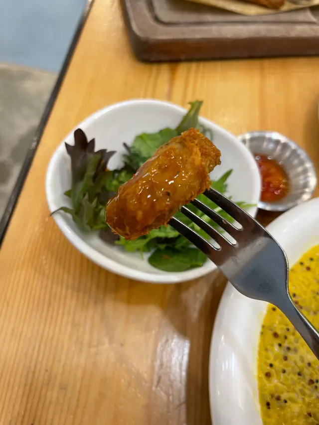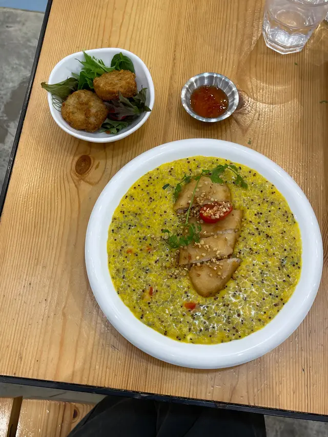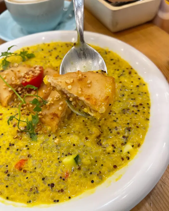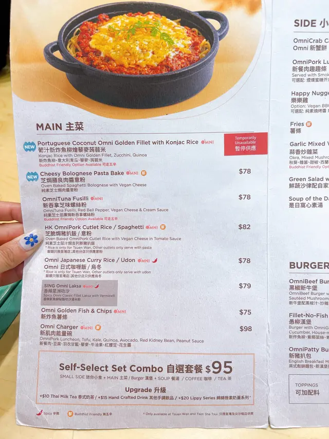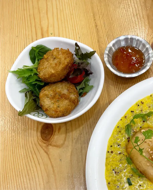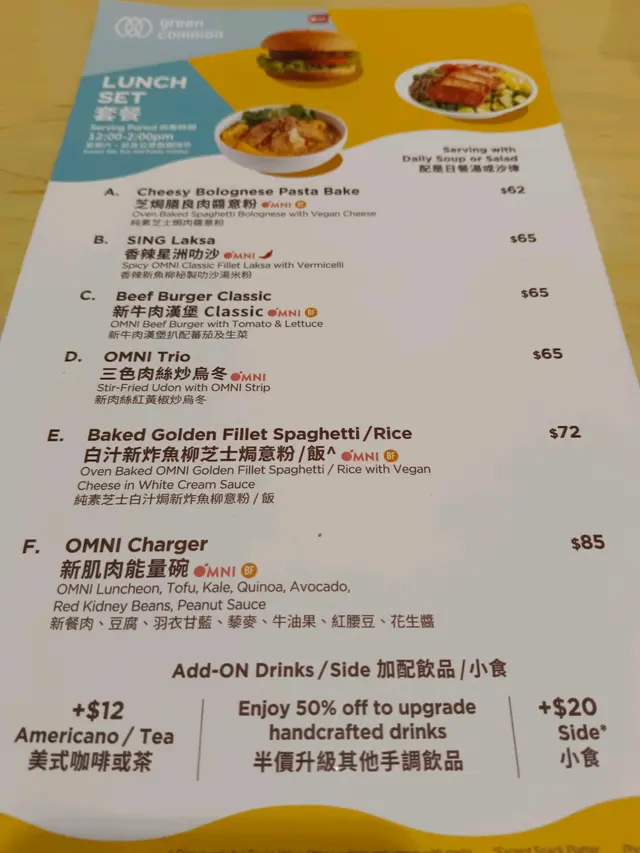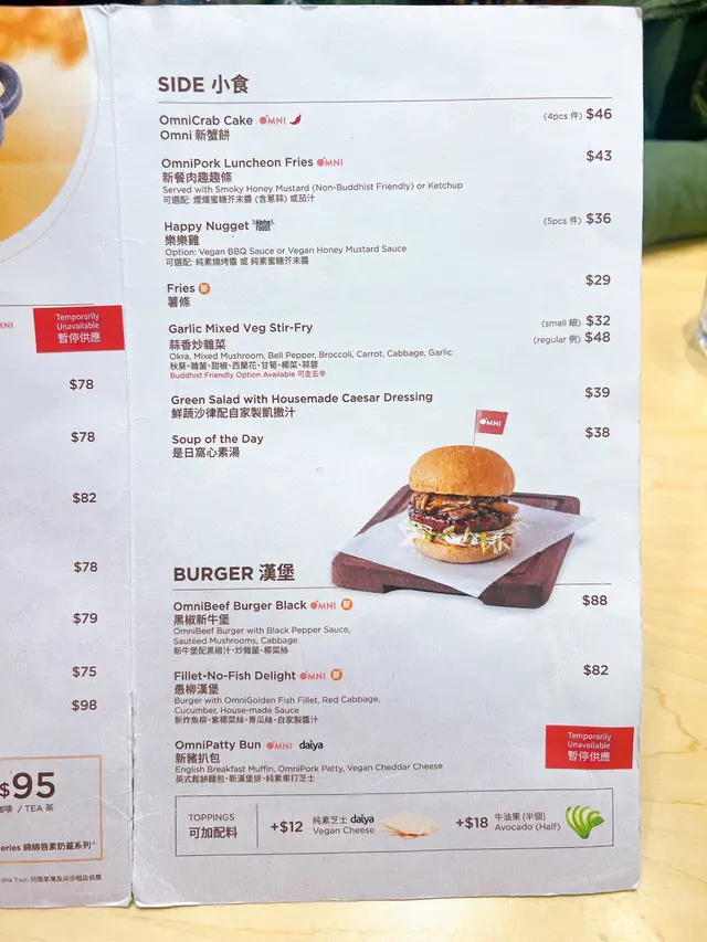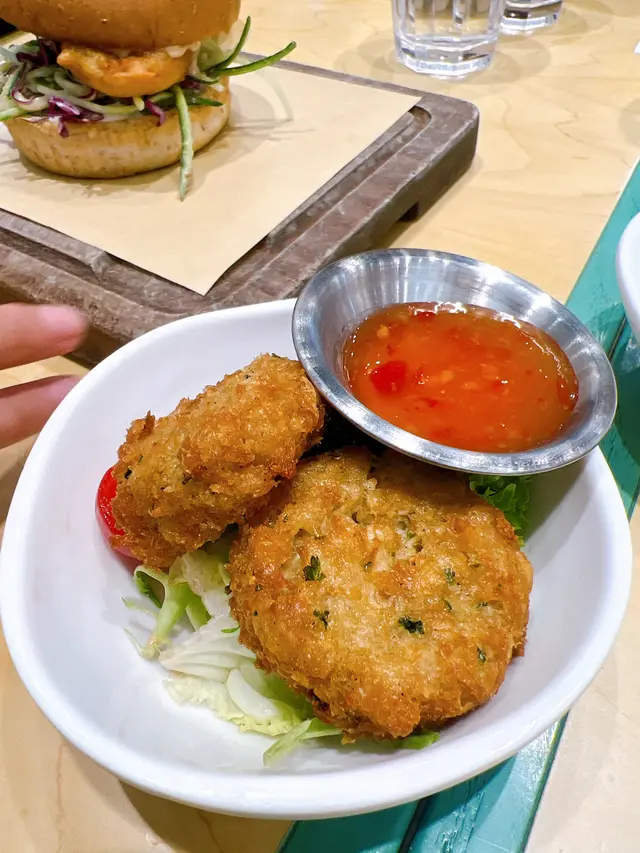 其實我好鍾意食素㗎,適逢2025新一年到來,我又發掘咗一間素食餐廳「Green Common」食下D全新創意素食料理。*此餐廳收取加一服務費。新肌肉能量碗(單點$98),好足料,採用新餐肉、硬豆腐、羽衣甘藍、紅毛生菜、藜麥、牛油果、鷹嘴豆、紅腰豆、車厘茄、粟米、花生醬製作;略嫌新餐肉食落豆味偏重、味道上不太類似午餐肉;蔬果食落好新鮮;花生醬味道濃厚,意想不到同沙律口味上都幾夾。葡汁新炸魚柳燴藜麥蒟蒻米(單點$98),表面鋪有炸蒟蒻米,食落脆卜卜;新炸魚柳口感外脆內嫩,食落帶有魚肉鮮味及輕微的豆味;葡汁採用天然香料、黃薑粉、椰漿製作,食落椰香濃郁;燴藜麥蒟蒻米口感Q彈,容易掛汁,類似食緊Risotto,配料包括有意大利青瓜、甜椒、車厘茄。蒜香炒雜菜(單點$48),採用秋葵、雜菌、甜椒、西蘭花、甘筍、椰菜製作,蘑菇、冬菇、草菇食落好Juicy,雜菜配以蒜蓉食用,食落好香口。新蟹餅2件(單點$24),即叫即炸,炸衣口感薄脆,新蟹肉食落口感一絲絲、帶有一點真蟹肉鮮甜的味道,還原度高,配以泰式甜辣醬食用,味道更佳。流心香芋西多士(單點$46),表面鋪有糖粉,西多士口感外酥脆內軟熟,食落蛋香味濃,內有芋泥,口感綿密,味道清甜,香芋醬內有香芋蓉,食落甜而不膩。提拉米蘇奶蓋(單點$48),半糖,表面鋪有可可粉,奶蓋採用Whipper Cream製作,口感細滑,味道鹹香,略嫌燕麥奶咖啡飲落Tiramisu味道欠奉,比較難以聯想。香芋烏龍綿綿茶(單點$46),半糖,表面鋪有脆片,烏龍茶茶味濃香,芋泥份量多。…查看更多