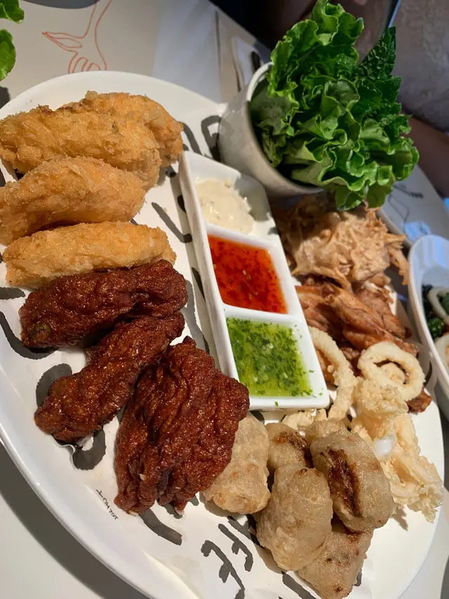 作為泰國菜, Menu選擇算多,但比較多食物偏辣,由於我們不能吃太辣,只能選一些適合的菜式。職員有禮貌,上菜速度10分快,份量也相當充足。個人喜愛吃紫米卷,即使配上生菜和醬汁,感覺味道有點淡,如喜愛吃清淡的食物,這味菜式十分適合。乜嘢幾多電呀?幾多電乜嘢先得㗎?七點囉拼盤份量十分大,共有六款食物,每種食物也有四件,個人比較喜歡魷魚卷和炸魚餅,幸好有一張吸油紙在下面,以致食物不會太油膩。墨魚麵喎,軟殼蟹木瓜沙律,比我們想像中辣,辣味蓋過了食物本身的味道。朋友推介這味粟米蟹肉餅,粟米和蟹肉也有相當多,口感豐富,同樣不太油膩,值得推介。查看更多