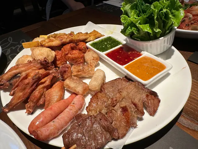 年廿九收爐日,同同事中午飲番個收爐飯。見佢lunch time 都唔駛等位,就走左入去試試。中午係unch set ,只可以散叫。可能都係因為咁 ,想要唔多人食。帶子蘆筍香草寬麵個青醬整得幾好食,蘆筍係BB size , 食落來爽口。帶子就普通。小食拼盤呢個小食拼盤有好多野食。仲配有三隻sauce.個人覺得串燒加上沙嗲醬最好食。下次可能直接order 串燒冬陰功炒粉依個味道都幾辣。海鮮好多。蝦又大又幾爽口。不過我就覺得個粉太濕。查看更多