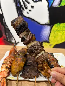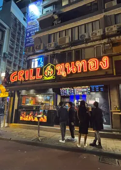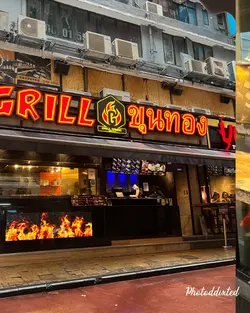 作为串烧控🍢每次行开中环都总会去兰桂坊泰式串烧店 🌸Grill ขุนทอง🌸擦餐劲!今次都唔例外~约埋老公去劲食串烧同其他美食,最终揽住个肚走,大满足☺️餐厅嘅招牌✨及仿壁炉装饰🔥超抢眼,设有户外企位及室内雅座,长期客似云来,人来人往,充满chill及开心嘅气氛~餐厅今期联乘台湾 #金色三麦SANMAI嘅手工啤🍺经店员细心推介,即刻叫咗两款,真系几好饮,就算我地酒量浅都好啱饮😌🍺柠檬蜂蜜啤酒 $45柔和柠檬 x 龙眼蜜,酸甜解腻!🍺鲜纯蜜桃啤酒 $45浓郁蜜桃香气 x 顺口气泡,香甜好饮!🥗柚子海鲜沙律 $75沙律好足料,有柚子、青瓜丝、墨鱼、大虾等海鲜,酸甜开胃。🍛 泰式青咖喱牛腩饭 $69微辣青咖喱 配 软腍牛腩,充满泰式风味。套餐免费跟餐饮 (冻热柠檬茶 / 奶茶)🐓泰式酸辣凤爪 $36无骨凤爪,酸辣爽口,好惹味。🥘冬荫功汤 $40浓郁足料,有大虾、草菇、泰式香料,集酸、辣、鲜、香于一身,层次丰富。🟢泰式青咖喱大鱼蛋 $28两粒劲大鱼蛋,沾满酱汁,酸辣弹牙。串烧有1️⃣5️⃣款,可自选辣或唔辣,师傅会为各款串烧配上酱料,另有7款酱料可额外加购。🦑鱿鱼须 $25 🐔鸡中翼 $22🐮牛肉 $22 🐔鸡肉 $18 🐷猪肉 $20鱿鱼须烟韧弹牙;鸡中翼肉质弹嫩;牛肉柔嫩;鸡肉嫩滑;猪肉有咬口。🌽有机粟米 $22 🍢有机露笋 $22🦐大花虾 $80 🐟泰国鱼饼 $25 🍢白鳝 $68粟米鲜甜;露笋爽脆;大花虾肉质结实又弹牙;鱼饼弹牙香辣好刺激;白鳝外皮焦香,肉质甘甜。🐔鸡皮 $25 🍢白猪肉肠 $26🐮牛仔骨 $48 🐷猪颈肉 $48 🍍菠萝 $22鸡皮香脆有嚼劲,好烟韧;白猪肉肠香口够juicy;牛仔骨配搭多种香料,肉嫩美味;猪颈肉爽脆弹牙;菠萝厚切大大粒,入口香甜爆汁,超正。🍮焦糖炖蛋 $36卖相好吸引,上层焦糖超香脆,炖蛋够嫩滑。…查看更多