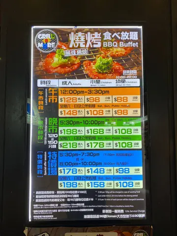 这里主打韩式烧烤,除了一大堆生的食材可选择外,其实还有很多熟食可选,可能就是因为这里还有在做两𩠌饭的关系!烧烤放题(5:30—10:00PM)(198元/人)单是熟食熟就有十几款可选,各式中式小菜,如生炒骨,炖牛腩,炒排骨,班腩等,还有炸物可选!最好的地方还可我喜欢的无骨凤爪!而主角韩式烧烤,常见的种类都有,其中我比较喜欢吃这里的牛肋骨,牛舌,猪仔骨和蜜汁叉烧,调味都挺吸引的,吃起来也不会沾其他调味料也够味了,当然重口味人士还可以沾烧肉汁了!饮品方面,这里有个台式饮品配料的地方,有珍珠,红豆,爆珠等给你加进饮品内,算是挺特别的,小朋友最爱!雪糕比想像中多选择,味道也很多款,我都有吃到,能吃过瘾!A4和牛(额外加钱)看到这里有做优惠就额外点来试试,油花不错,吃起来非常嫩滑,是真的日本和牛!…查看更多